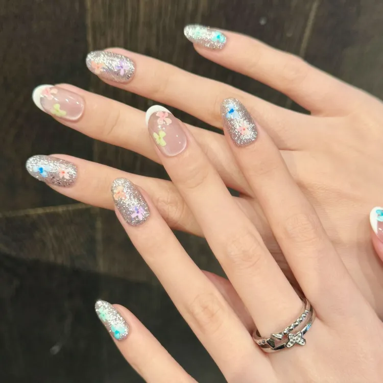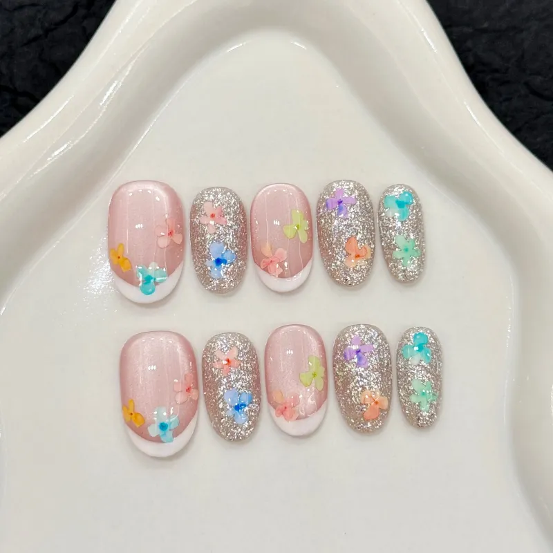 JINGCHANXUE Попурри Многоцветный Ручная работа Искусственный Ногтик Овал Французский Градиентный Блестящий 14мм