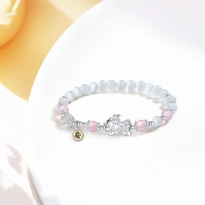 Белый лунный свет, китайское благоприятное животное, китайский зодиак, бык и тигр, браслет с бусинами