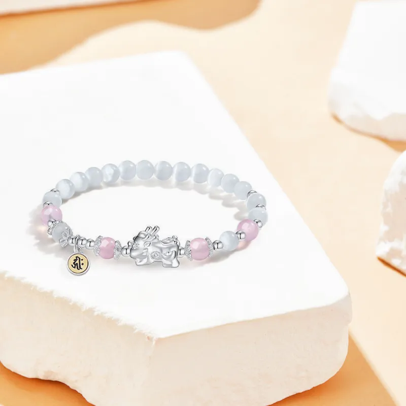 Стиль:Белый лунный свет, китайское благоприятное животное, китайский зодиак, крыса, браслет с бусинами