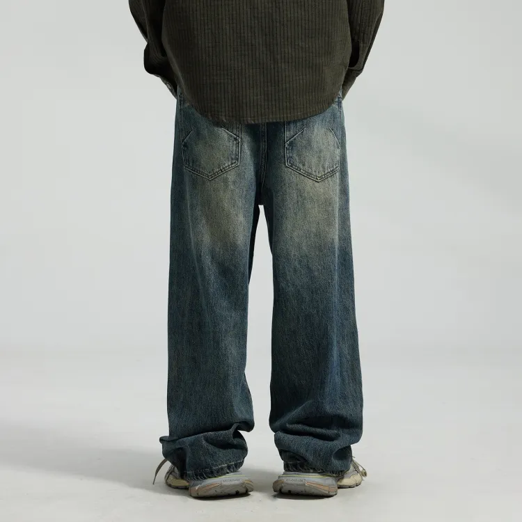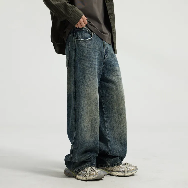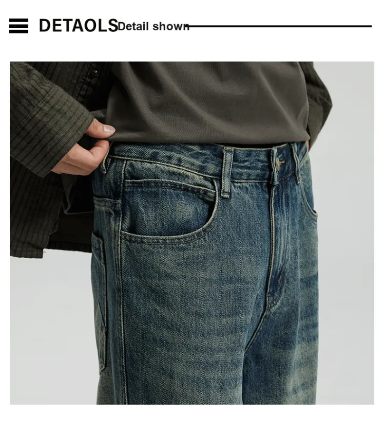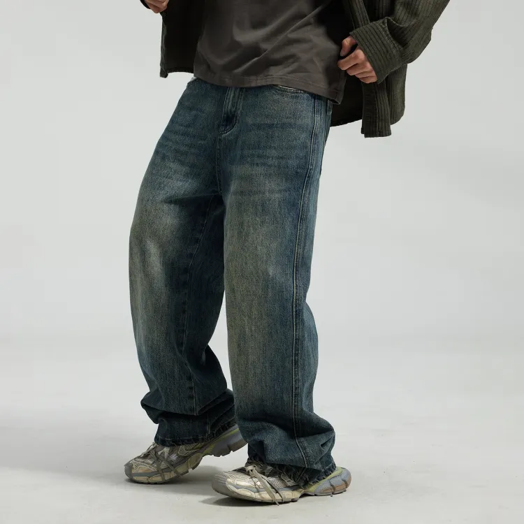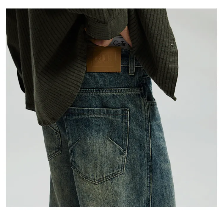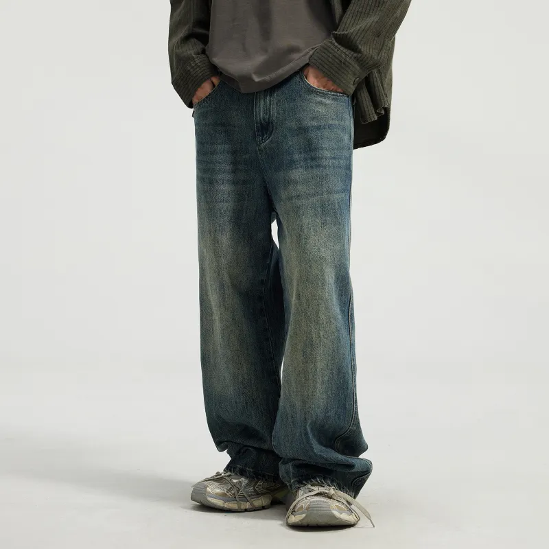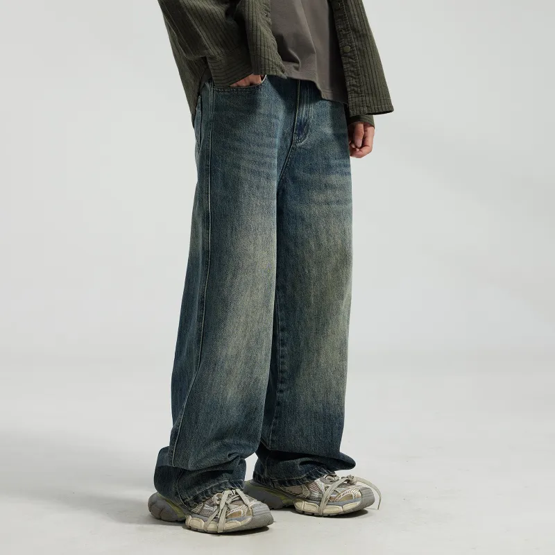 JINGLANG Джинсы Мужские Винтажные Синие