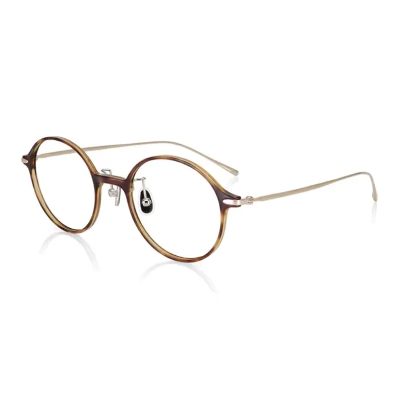 JINS β-титан Смола Круглые Оправы для очков Унисекс Желтый Черепаховый