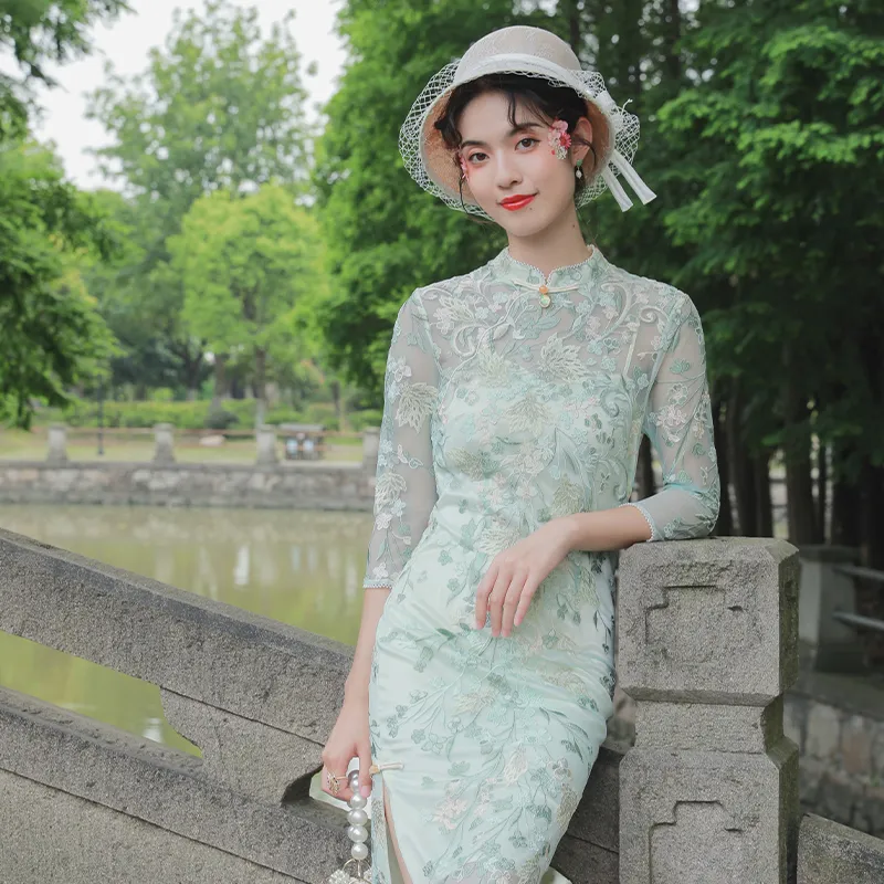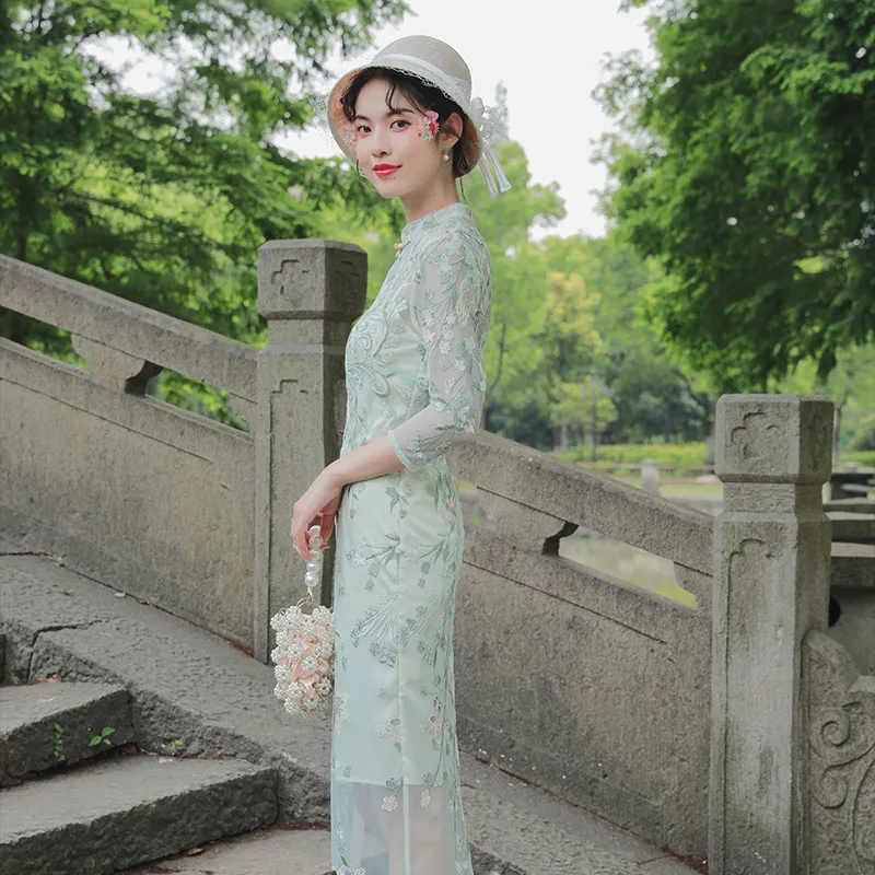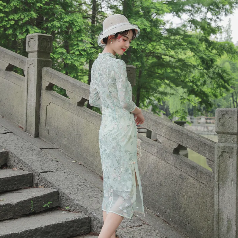 JINYE ORIENTAL Светло-зеленый Женские Ципао