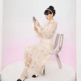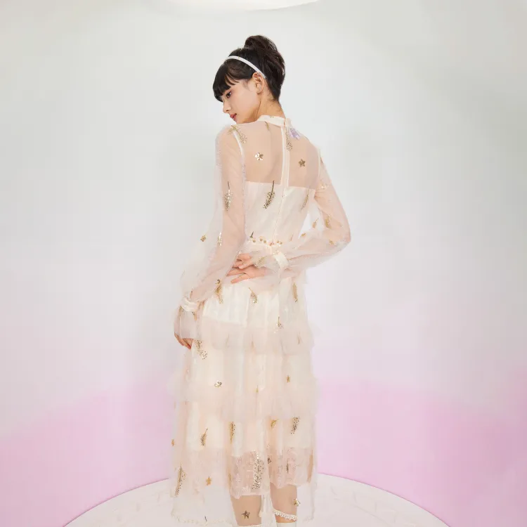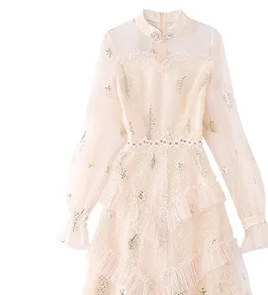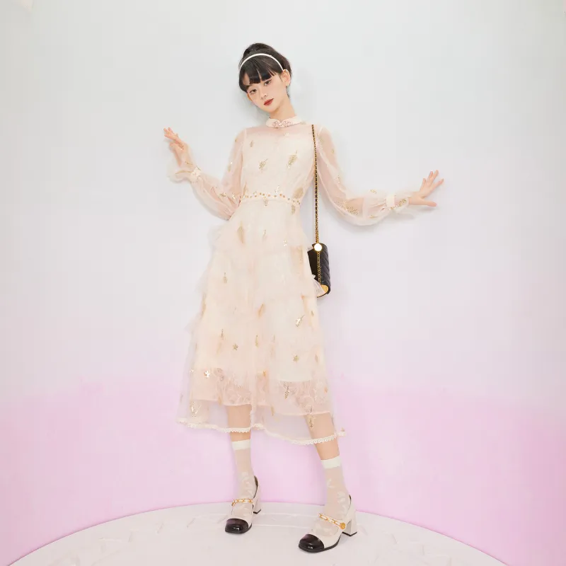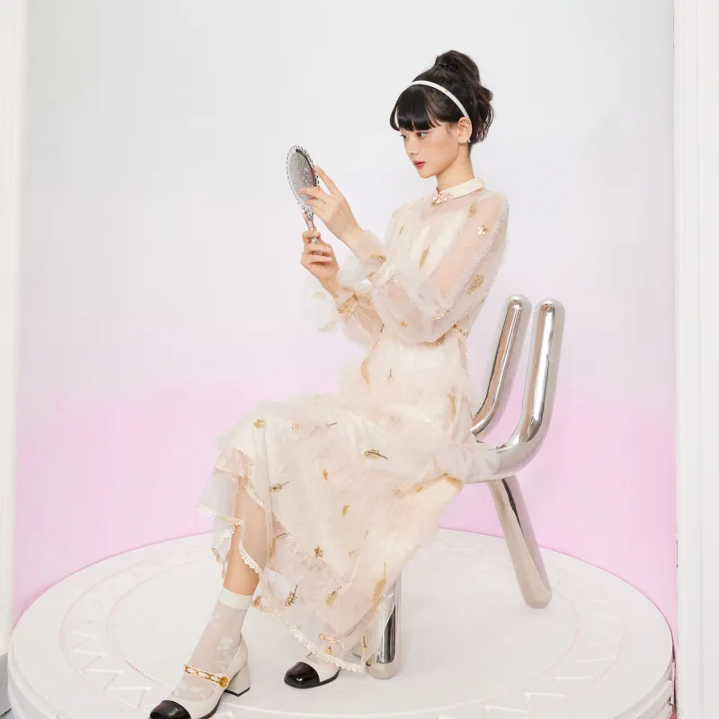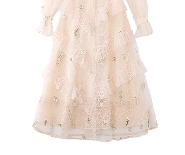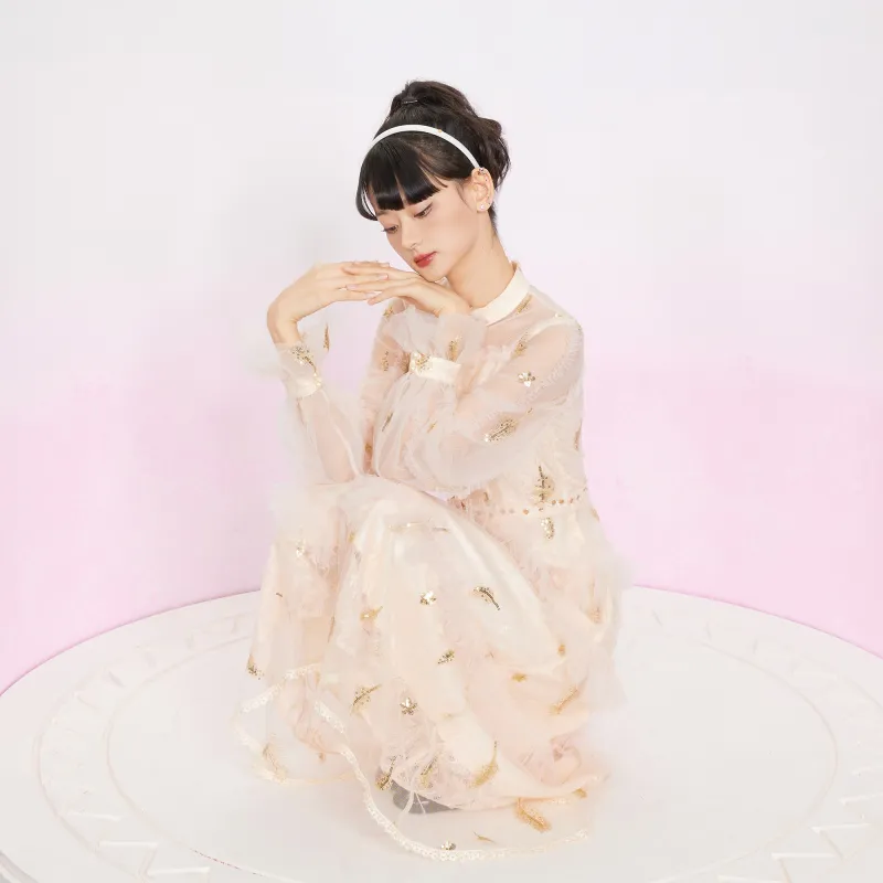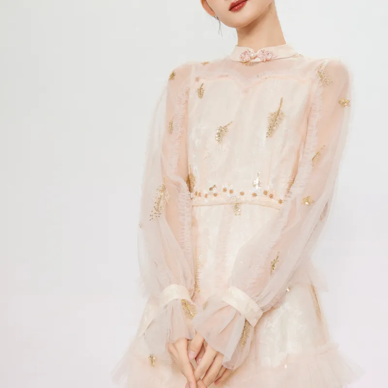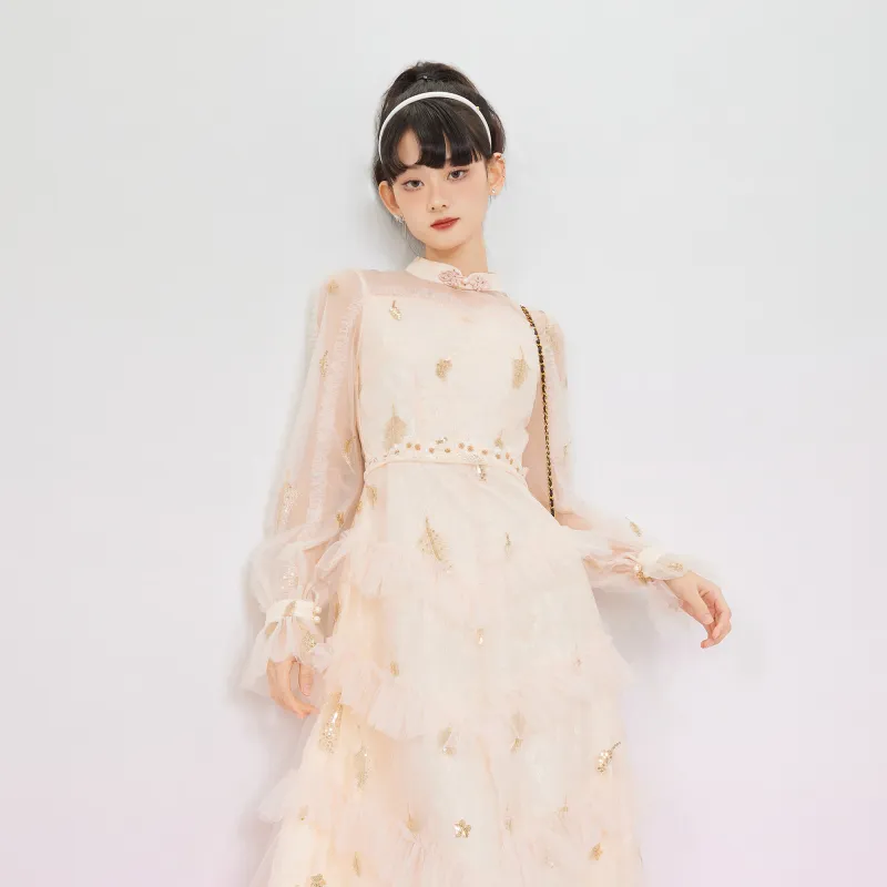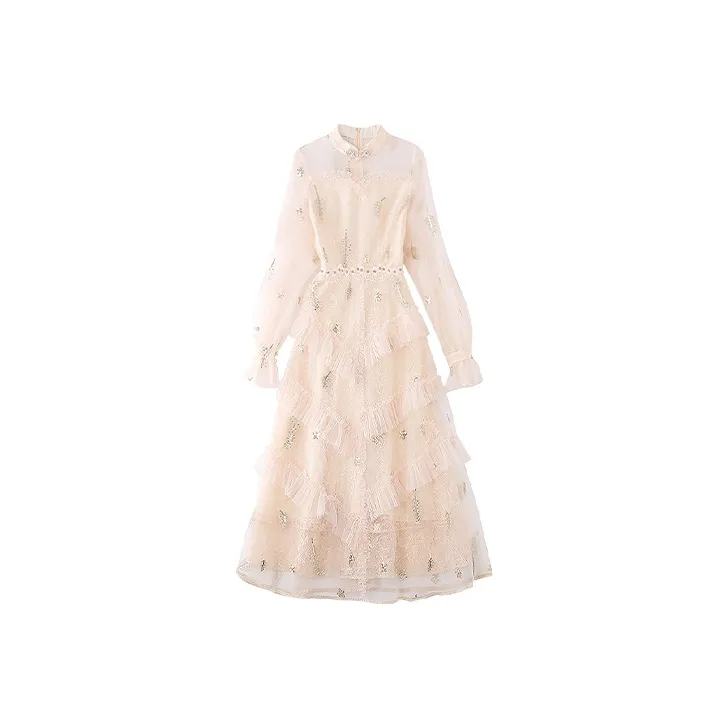 JINYE ORIENTAL Длинное платье с длинными рукавами женское кремово-абрикосового цвета