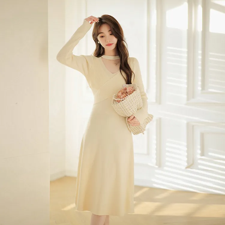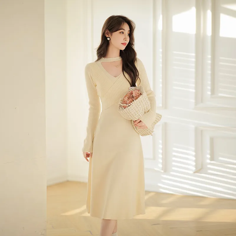 JINYE ORIENTAL Бежевое Женское Длинное Платье с Рукавами