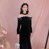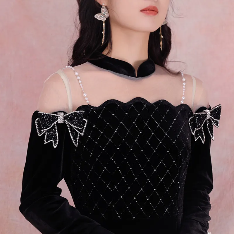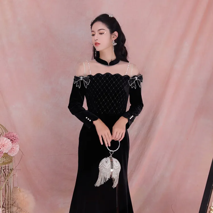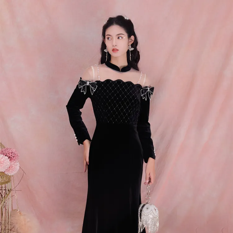 JINYE ORIENTAL Black Женские Длинные Рукава Платья