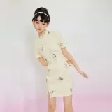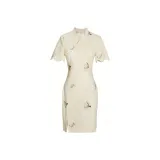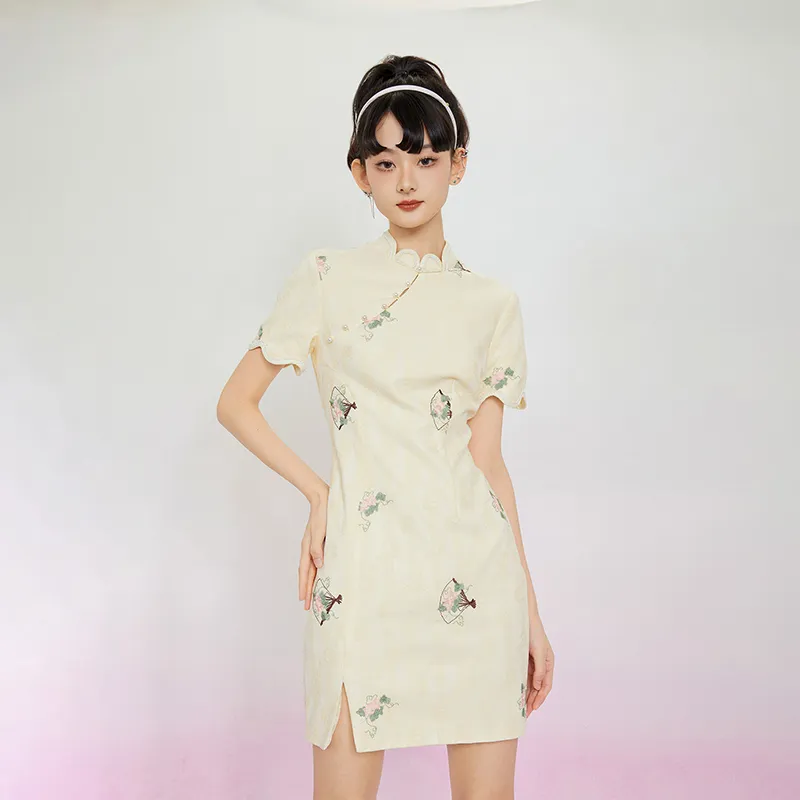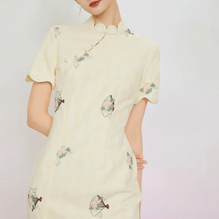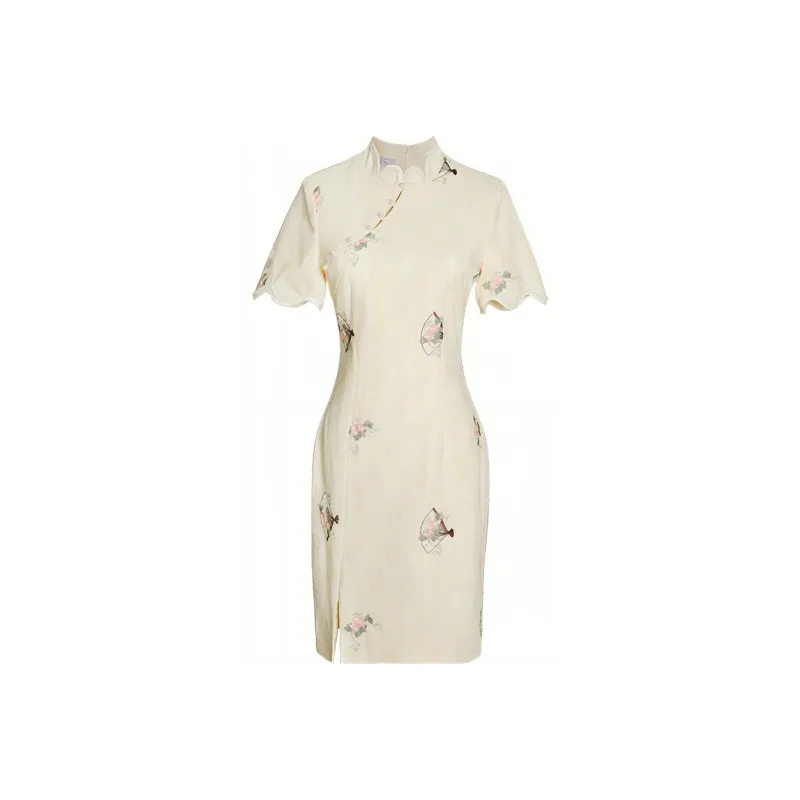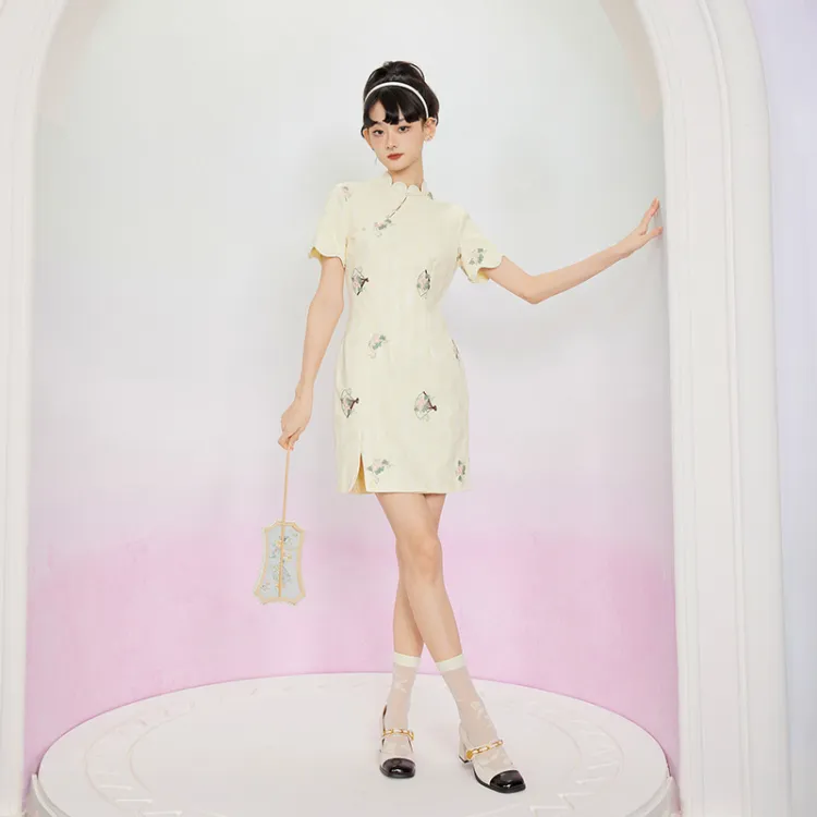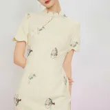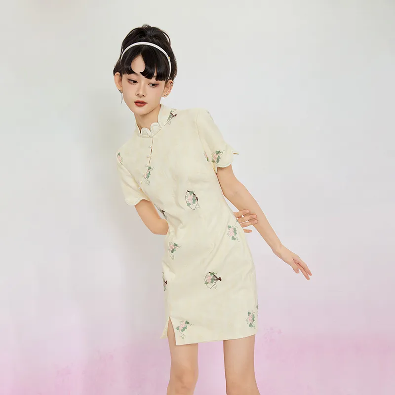 JINYE ORIENTAL Лепесток Диагональная планка Короткий рукав Халат Женские Crescent Moon Желтый