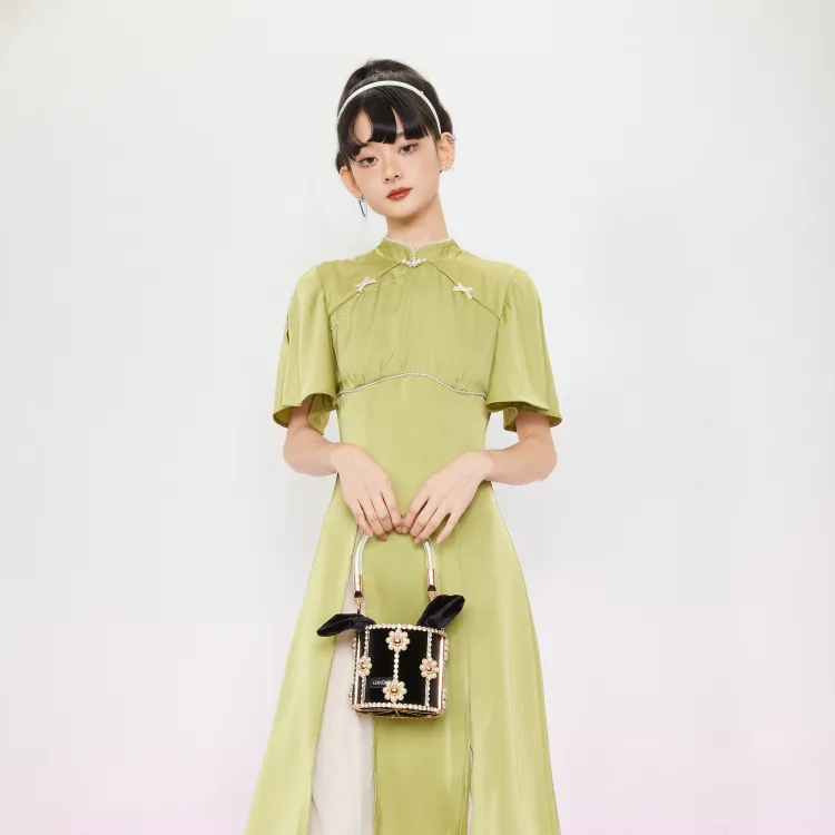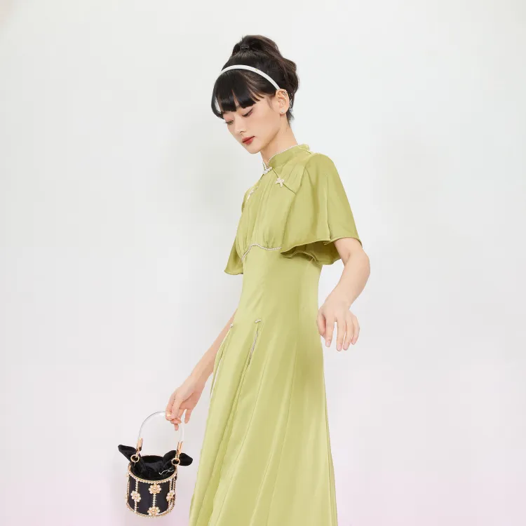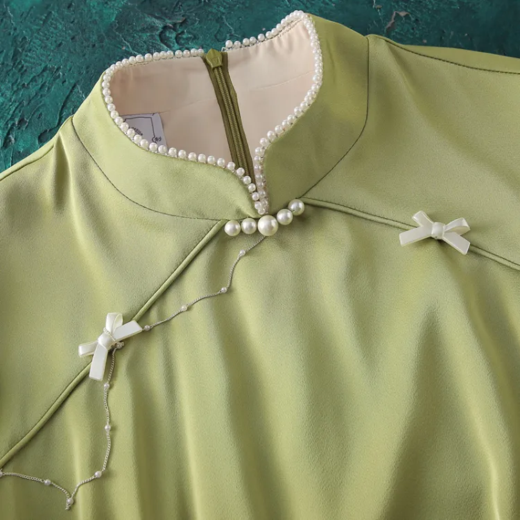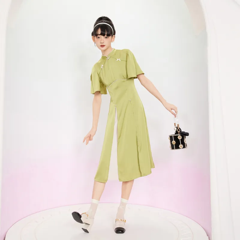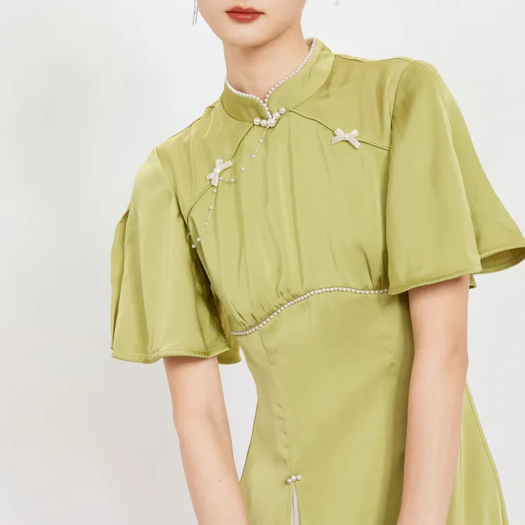 JINYE ORIENTAL Светло-зеленый Женские Короткие Платья с Рукавами