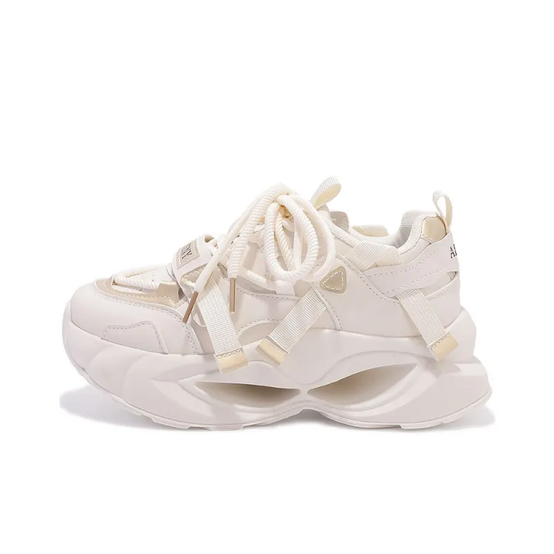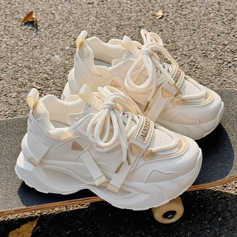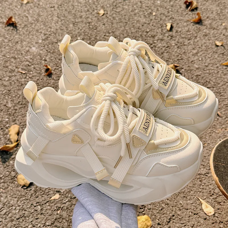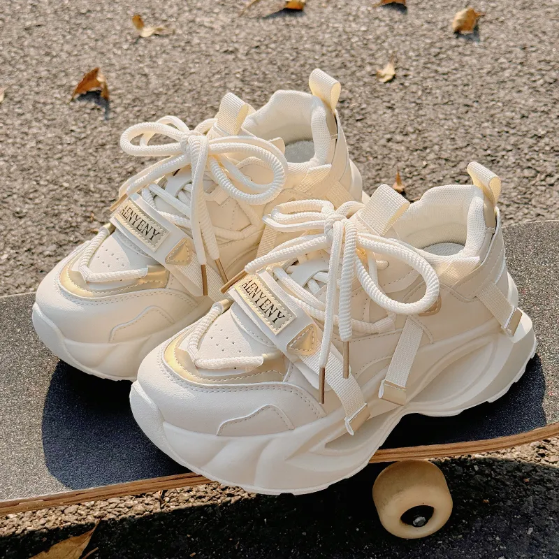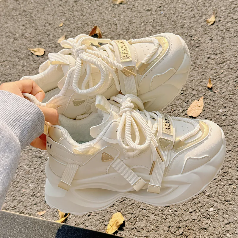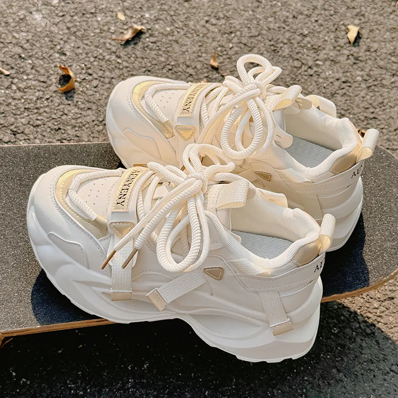 JIONGSEN Противоскользящие устойчивые к истиранию низкие топовые кроссовки с толстой подошвой женские бежево-золотого цвета