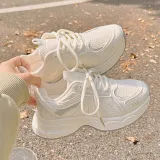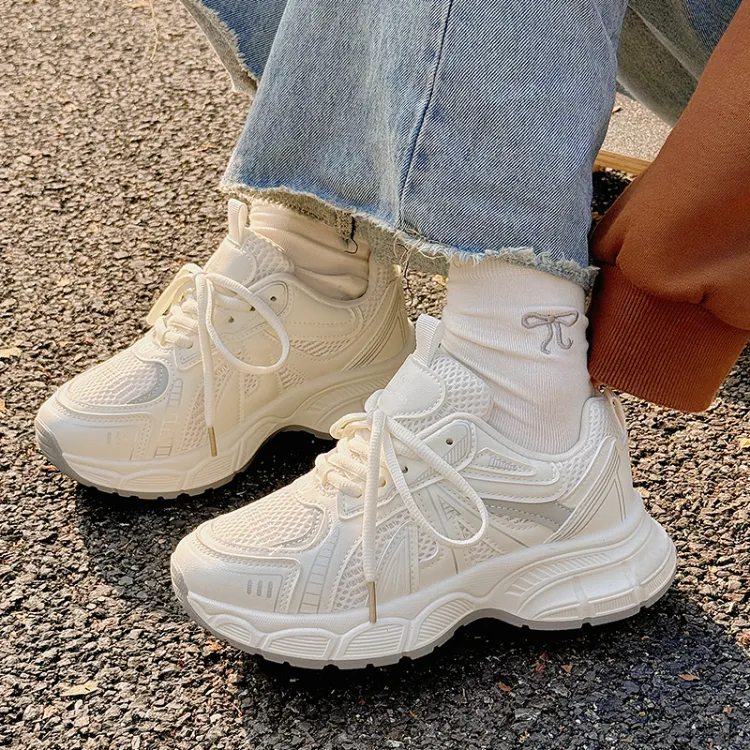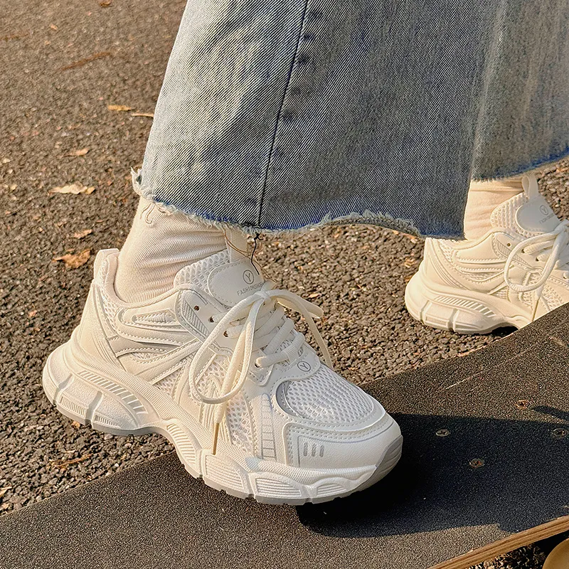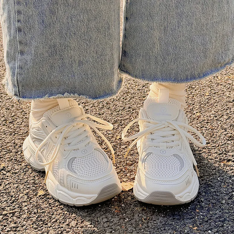 JIONGSEN Противоскользящие устойчивые к истиранию низкий топ кроссовки с толстой подошвой женские экрю