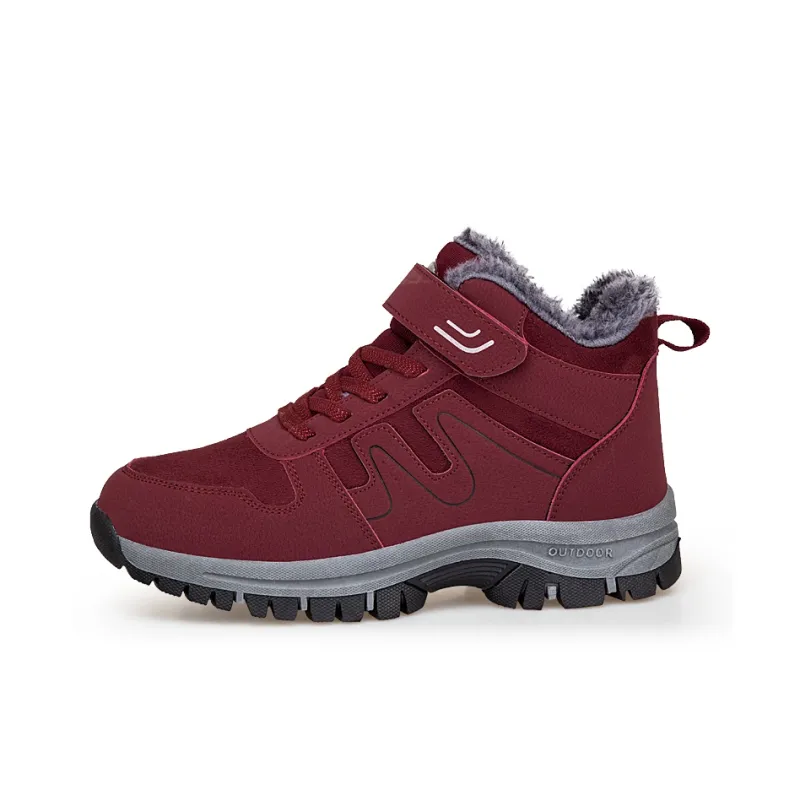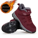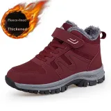Цвет:Бордовый, женский (размеры 36-41), зимний, на открытом воздухе, утолщенный и с флисовой подкладкой, термический, для пожилых, сноубутсы, водонепроницаемый, противоскользящий