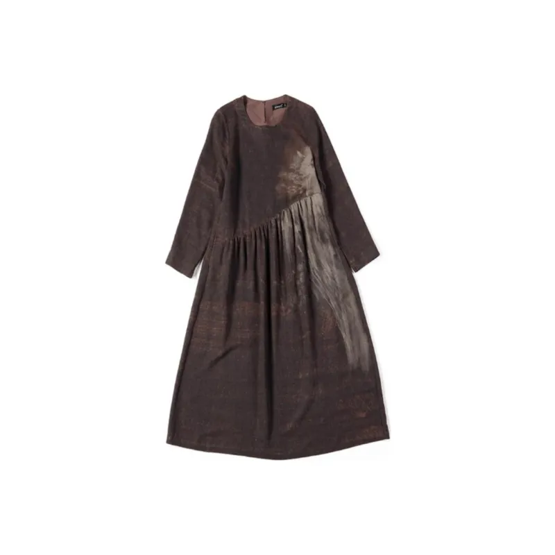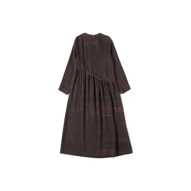 JIXIANGYUER Длинное платье с длинными рукавами женское цвет грязно-черный