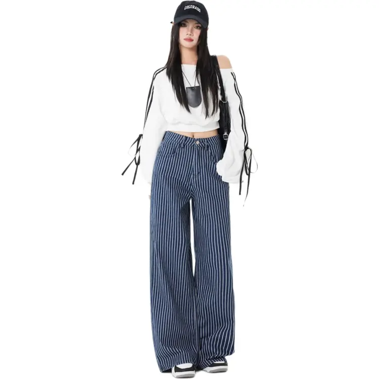 JIYILIAN Повседневные брюки Женские Синие полосы