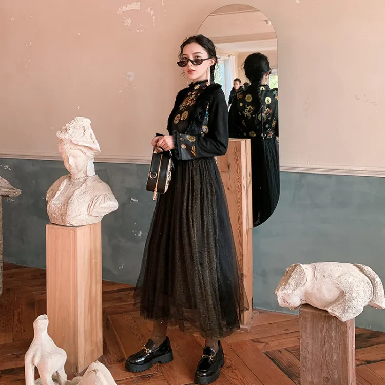 JK JS Плиссированная юбка Платье Черное