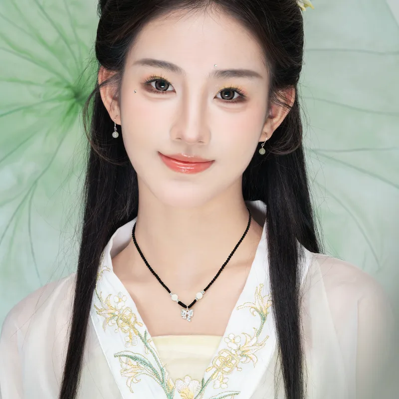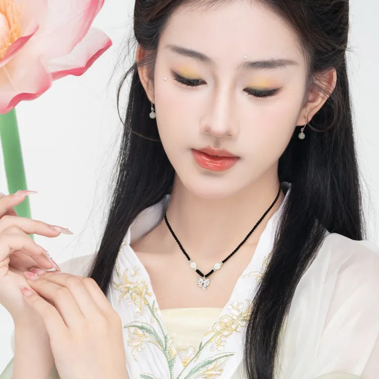 Длина цепи примерно 45+18 см / Бусины примерно 6 мм / Лента примерно 12*14 мм