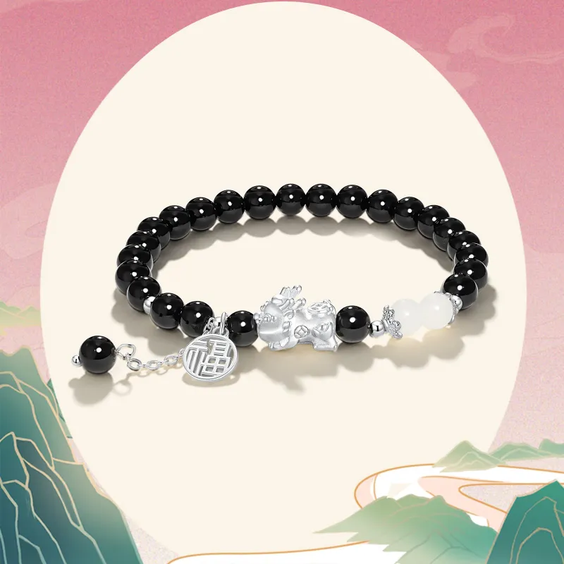 Цепь длина примерно 16 см / Бусина примерно 6 мм / Китайское благоприятное животное примерно 9*13 мм