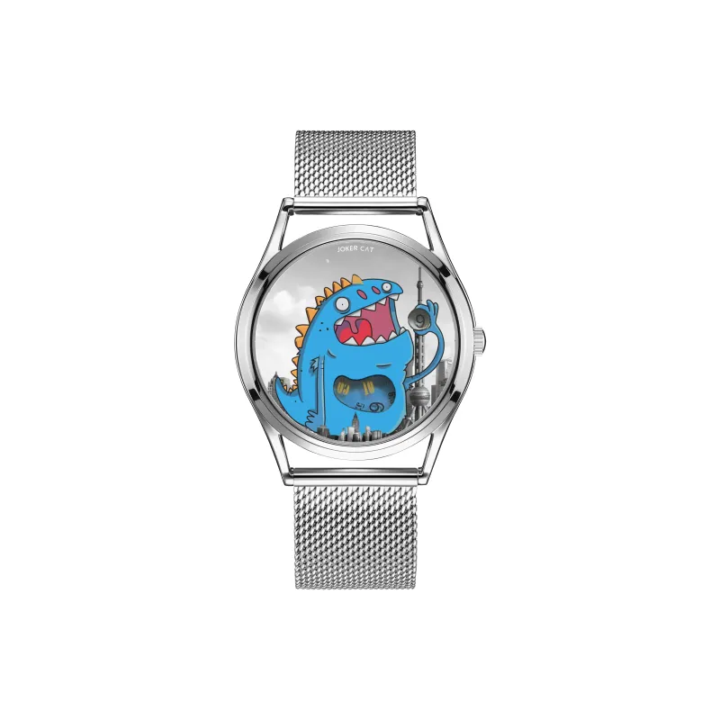 JOKER CAT Кварцевый механизм Металлический ремешок Часы Унисекс Синий циферблат