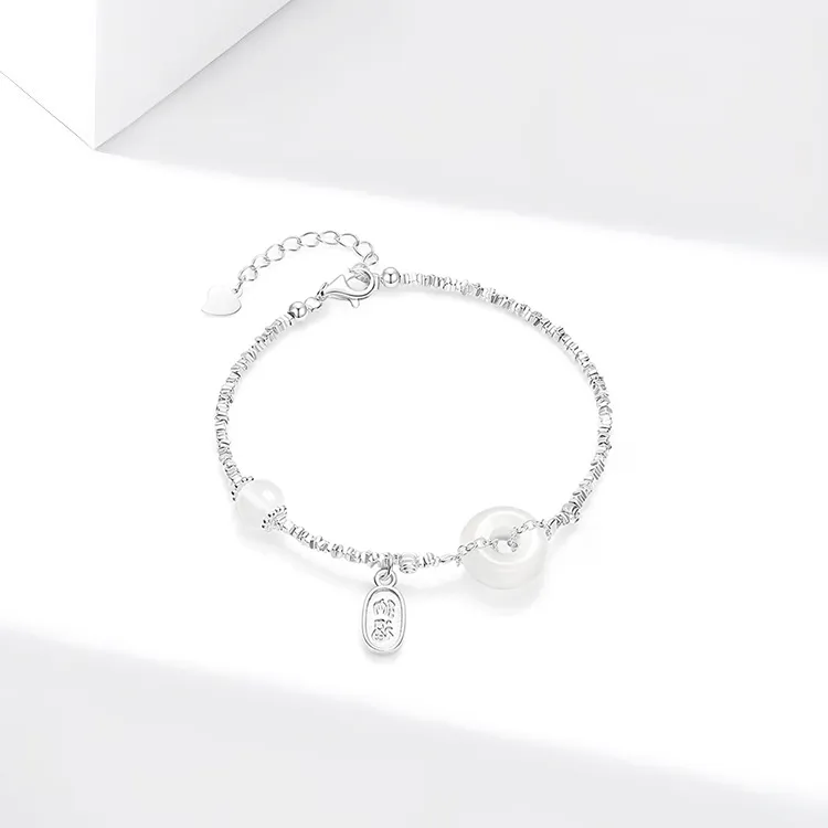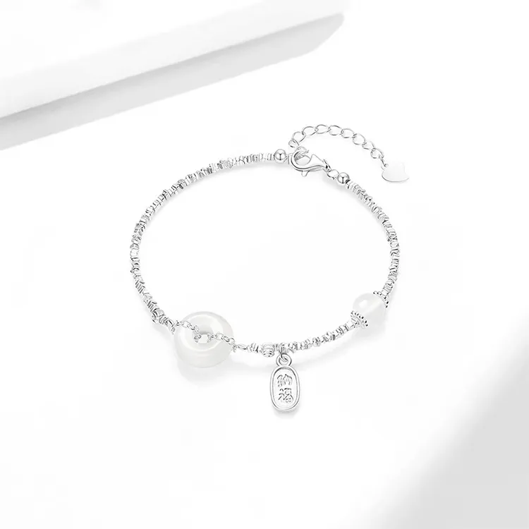 Стиль:Серьезный Серебряный Браслет с Замком Мира