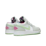 Jordan Air Jordan 1 Low Амортизация и Дышащий Низкий Топ Детские Баскетбольные Кроссовки Мятно-Зеленый