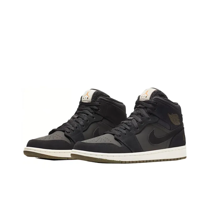 Jordan Air Jordan 1 MID Anti-slip Легкий MID Топ Винтажные баскетбольные кроссовки Мужской Черный