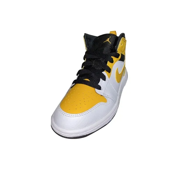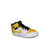 Jordan Air Jordan 1 MID Устойчивый к истиранию MID Топ Детские баскетбольные кроссовки Желтый Белый Для детей 3-7 лет