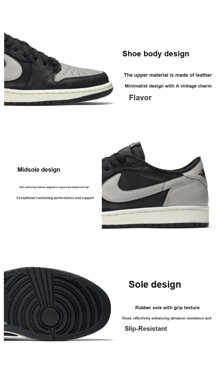 Jordan Air Jordan 1 Нескользящий Легкий Низкий Топ Винтажные Баскетбольные Кроссовки Мужские Черные Серые 2015