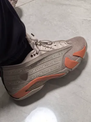 По сравнению с AJ13 Terracotta Warriors, мне больше нравится силуэт этих AJ14. У них более выраженный обтекаемый вид, а дизайн кроссовок более гладкий и чистый. Они мне понравились с первой примерки. Кроссовки хорошо облегают ногу, и для повседневной носки я пропускаю шнуровку последних двух люверсов, чтобы их было легче снимать и надевать. Дизайн CLOT Terracotta Warriors очень продуманный и легко узнаваемый. Боковая панель напоминает и городские стены, и доспехи терракотовых воинов. Китайский узел на пятке немного громоздкий, но, к счастью, он съемный, поэтому я его убрал, чтобы кроссовки выглядели аккуратнее и чтобы не потерять его. Монета с иероглифом «Цяо» — приятная деталь, но она не похожа на настоящий металл — тот же материал, что и на наконечниках шнурков, просто с металлическим покрытием. Внутри кроссовка, ближе к пятке, есть необычная вентиляционная прорезь, вероятно, вдохновленная выхлопной трубой спорткара. Она действительно улучшает воздухопроницаемость, но зимой пропускает холодный воздух, из-за чего ноги мерзнут. Я бы сказал, что в них комфортно ходить примерно до нуля градусов. Хотя это коллаборация, как и AJ13, и у нее нет такого ажиотажа, мне все равно больше нравятся AJ14 за их внешний вид. Однако по удобству они немного уступают AJ13 — ощущаются более жесткими. В целом, это хорошо продуманные коллаборационные кроссовки с культурными элементами. С возвращением Эдисона Чена в Adidas, возможно, это последняя такая модель.