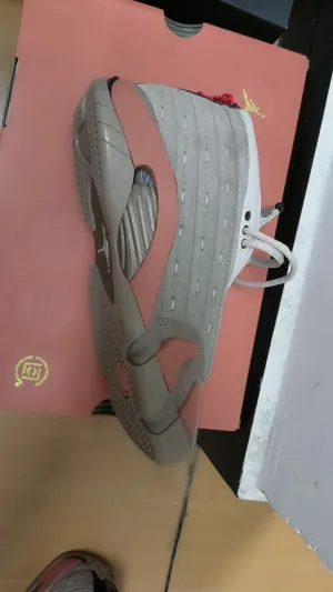 Тема раскрыта очень сильно. Помимо силуэта AJ14, почти всё остальное было изменено. Общая цветовая гамма вдохновлена терракотовыми воинами, с большими участками землисто-серого на верхней части из замши. Тисненые и прошитые детали верха имитируют доспехи терракотовых воинов, в сочетании с кирпично-красной подошвой. Хотя материал на носке тоже замша, он отличается от боков кроссовок — больше напоминает искусственную кожу. Язычок выполнен в бежевом цвете с логотипами Jordan и CLOT, подчеркивая коллаборацию. А теперь изюминка: монета и узел мира. Кому-то они кажутся удачным дополнением, а кому-то — лишними — это действительно вопрос личного вкуса. Лично я считаю, что монета смотрится хорошо; она вписывается в тему древней гробницы. Наконец, коробка для обуви — высший класс, полностью сделана из жесткого матового материала в том же кирпично-красном цвете, что и подошва, придавая ей премиальный вид.