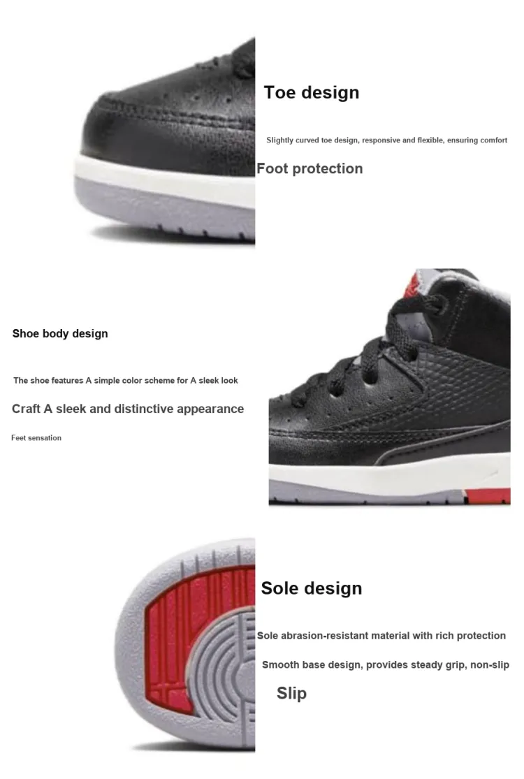 Jordan Air Джордан 2 Черный Цементный Амортизация Высокий Топ Обувь для малышей Черный Infant And Toddler