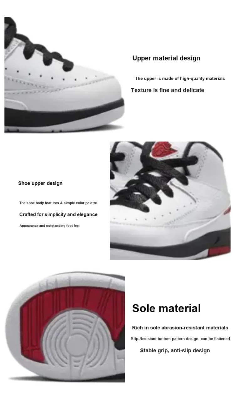 Jordan Air Джордан 2 Нижняя юбка Устойчивая к истиранию Высокий топ Обувь для малышей Белый черный красный Для младенцев и малышей