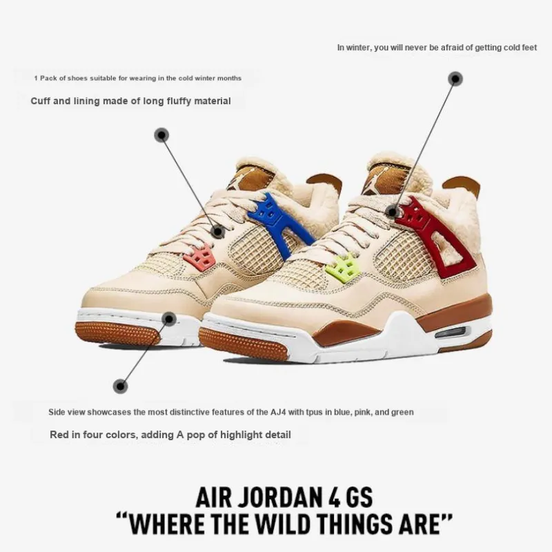 Jordan Air Джордан 4 'WILD THINGS' Устойчивые к истиранию MID Топ Винтажные баскетбольные кроссовки Хаки Для малышей и детей дошкольного возраста