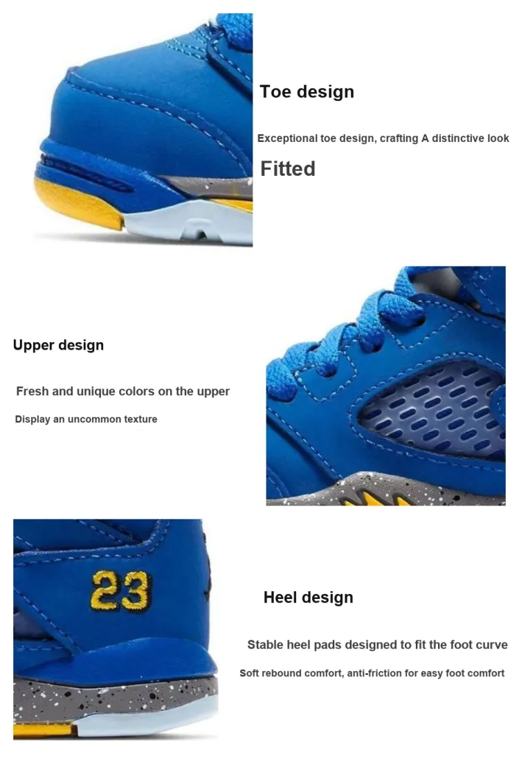 Jordan Air Джордан 5 Ретро Противоскользящие Высокие Кроссовки для малышей Синий Для младенцев и малышей