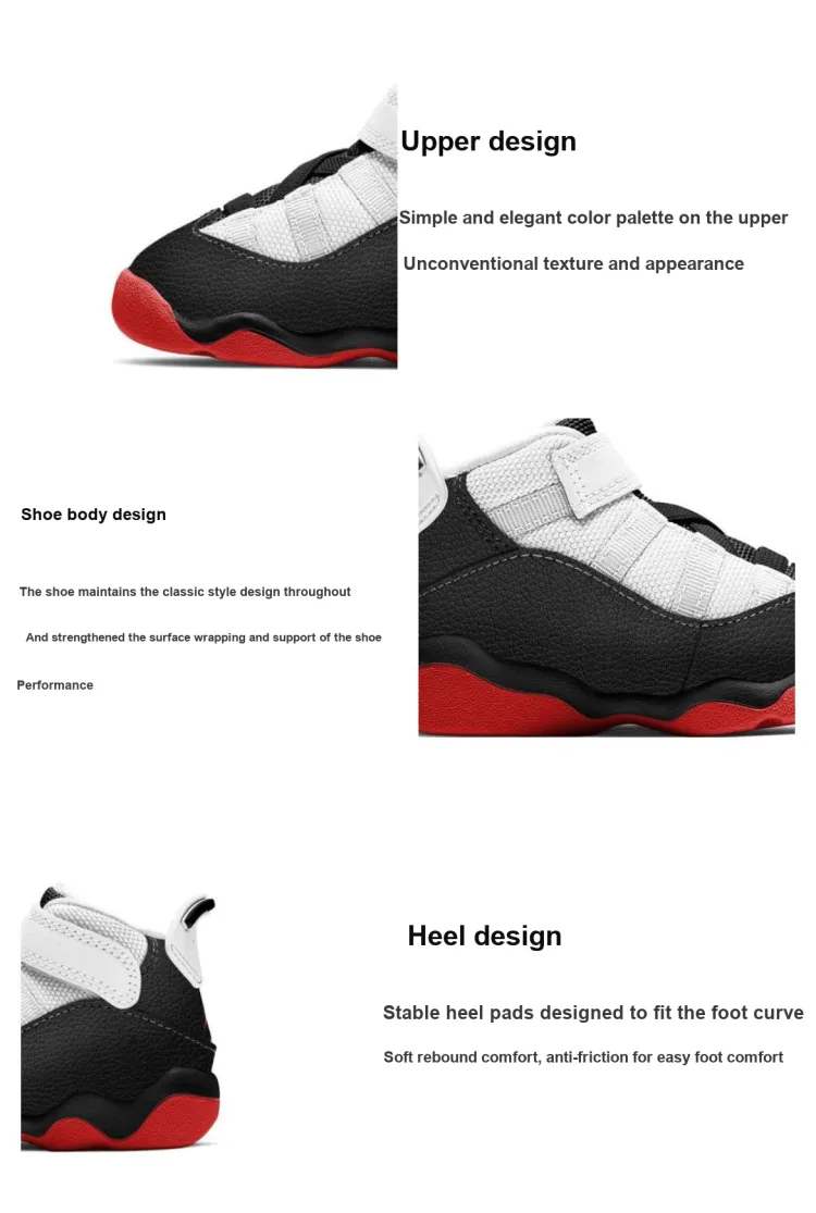 Jordan Air Jordan 6 Кольца Slip-resistant Anti KICK MID Топ Обувь для малышей Черный Белый Красный Infant And Toddler