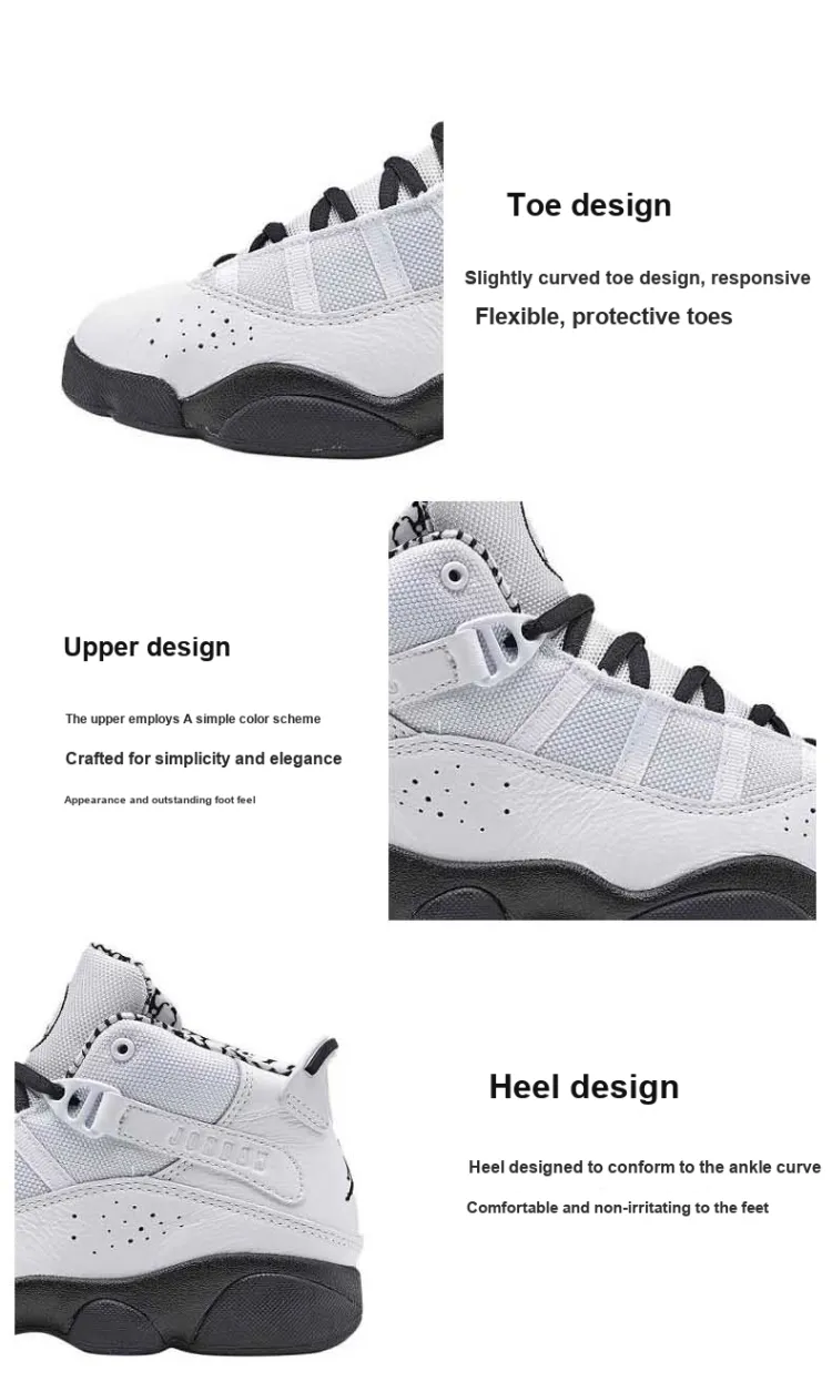 Jordan Air Jordan 6 Кольца Противоскользящие Устойчивые к износу MID Топ Детские Баскетбольные кроссовки Белый