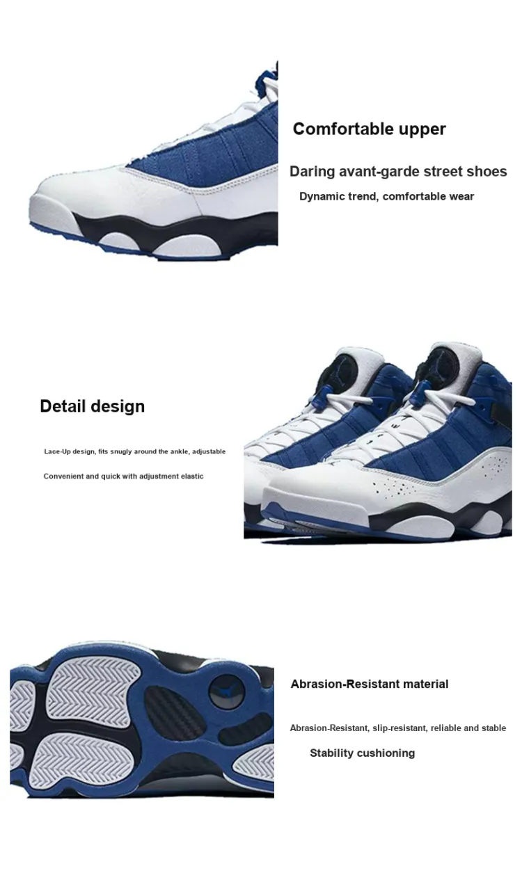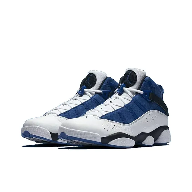 Jordan Air Jordan 6 Кольца Амортизаторы Slip-resistant MID Топ Винтажные баскетбольные кроссовки Мужской Синий Белый
