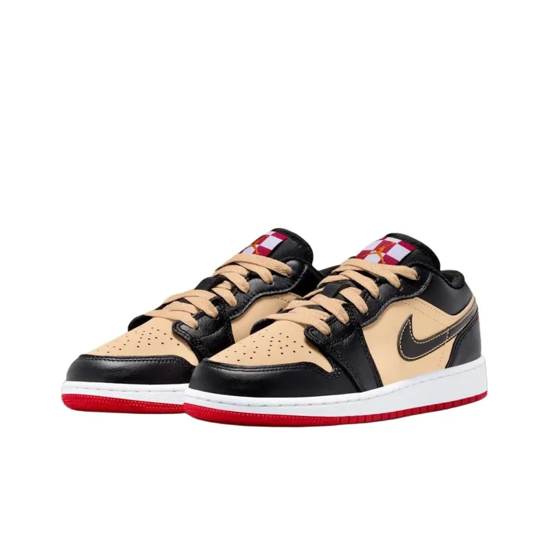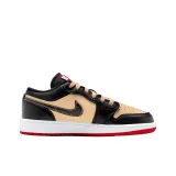 Jordan Air Jordan 1 Устойчивые к истиранию Низкие Баскетбольные кроссовки для детей Коричневый Черный