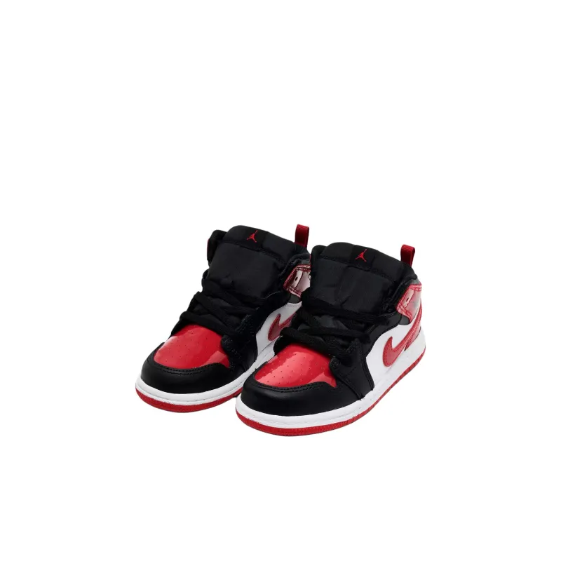Jordan Air Jordan 1 MID Топ Обувь для малышей Черный белый красный Infant And Toddler