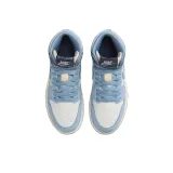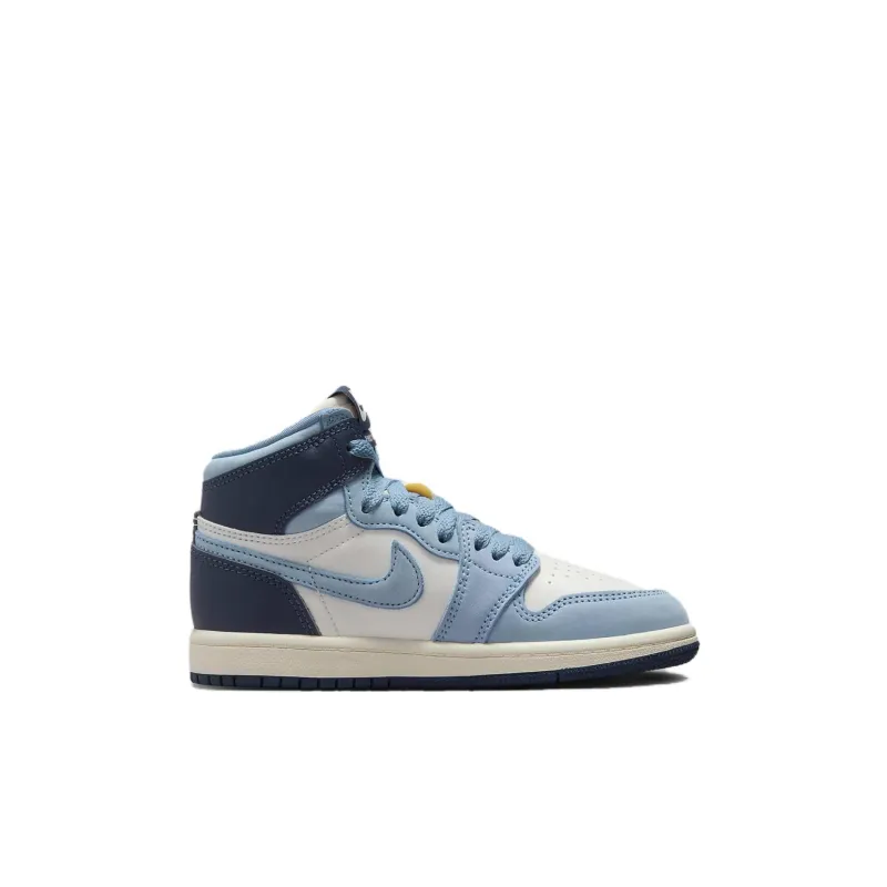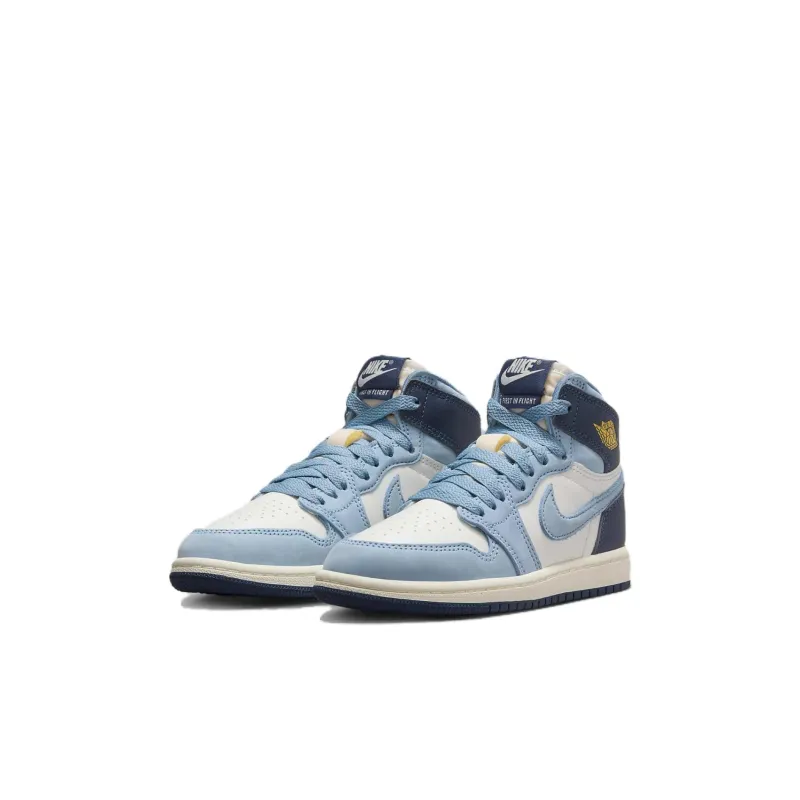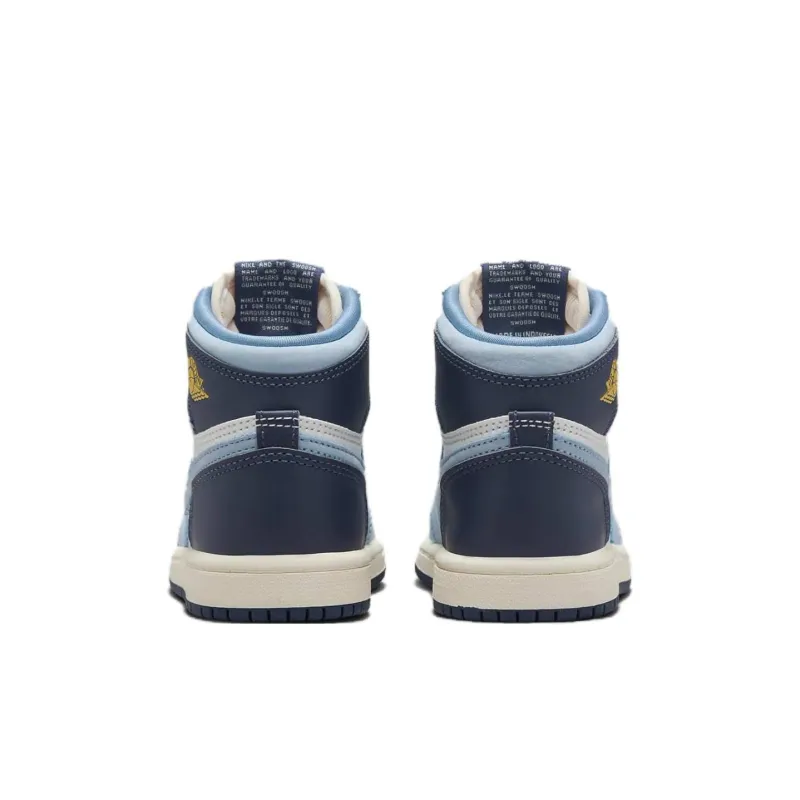 Jordan Air Jordan 1 Slip-resistant Abrasion-resistant High Top Детские Баскетбольные кроссовки Синий Белый Золото