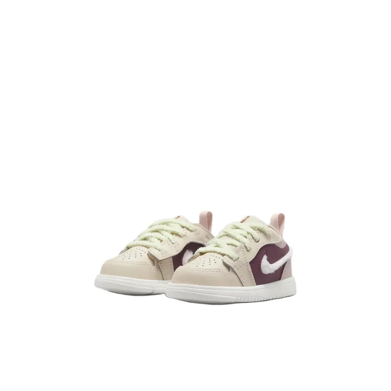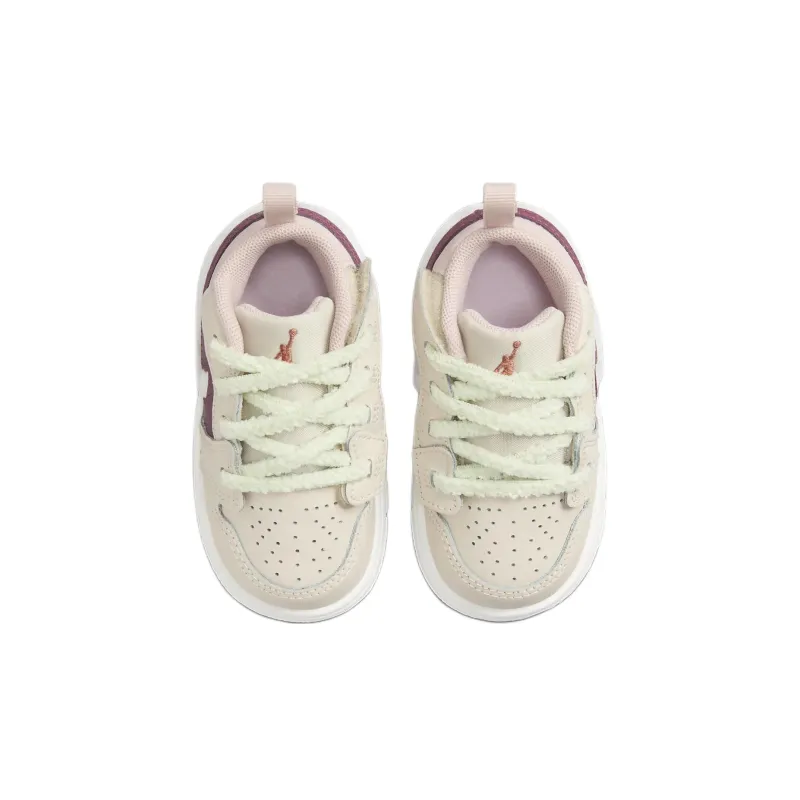 Jordan Air Jordan 1 Противоскользящая Устойчивая к истиранию Низкий Топ Обувь для малышей Бежево-красный Для младенцев и малышей
