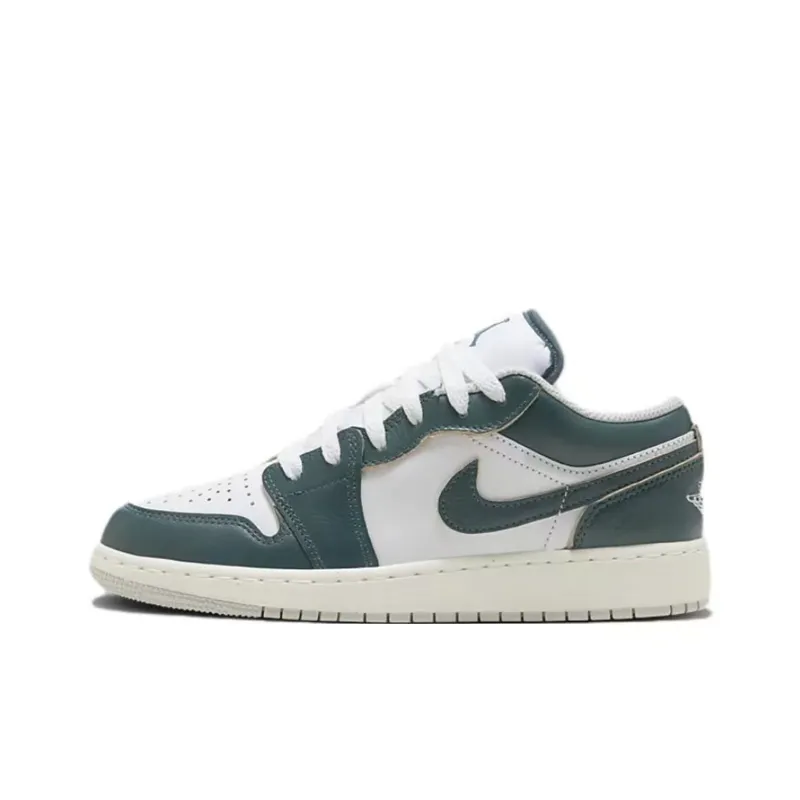 Jordan Air Jordan 1 Противоскользящие Амортизация Устойчивые к износу Низкий Топ Детские Баскетбольные кроссовки Белый