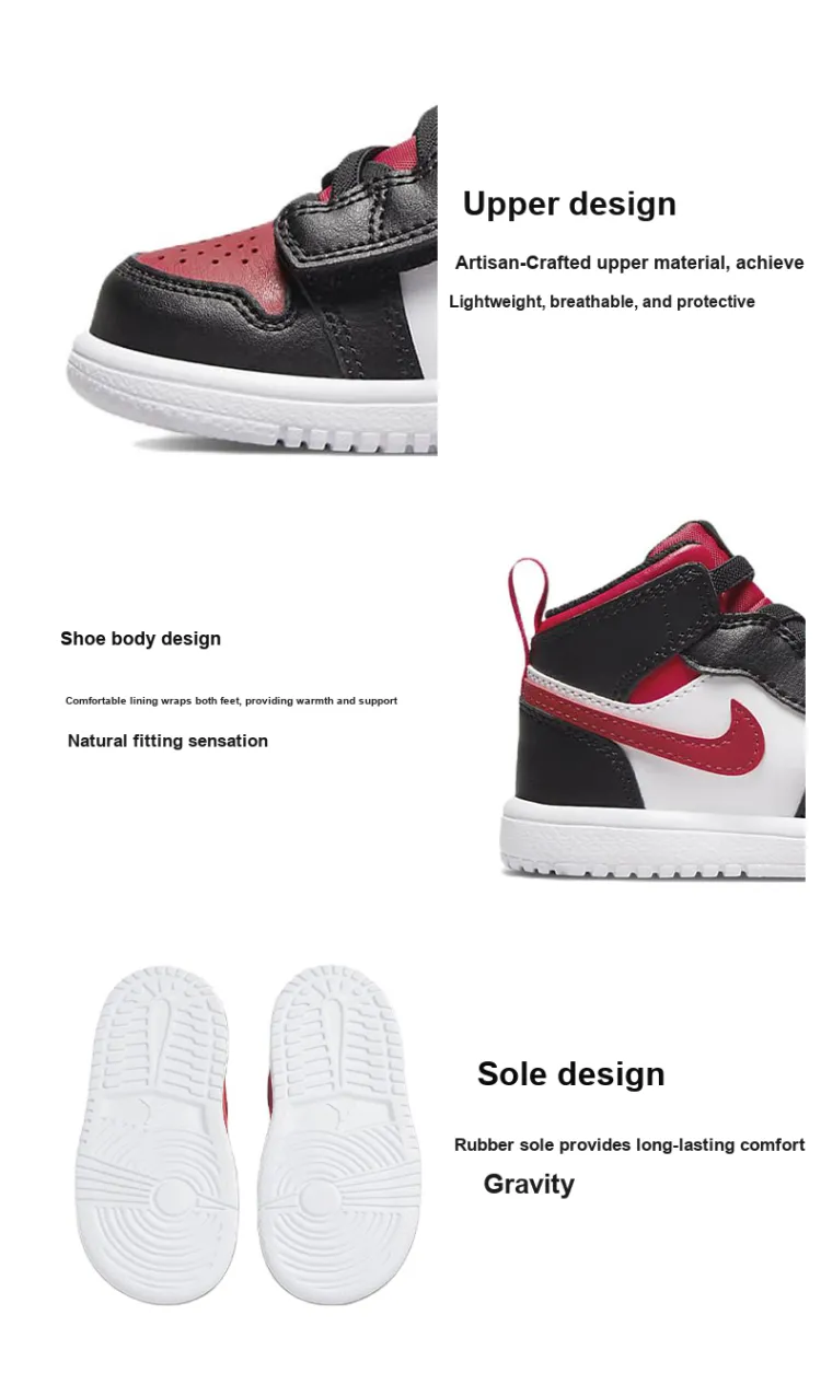 Jordan Air Jordan 1 MID Alt 'Bred Toe' Амортизация Противоскользящий Устойчивый к истиранию MID Топ Обувь для малышей