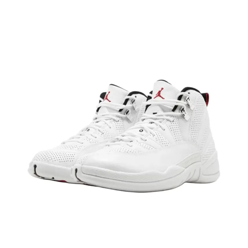 Jordan Air Джордан 12 Противоскользящий устойчивый к истиранию высокий топ детские баскетбольные кроссовки белый для подростков