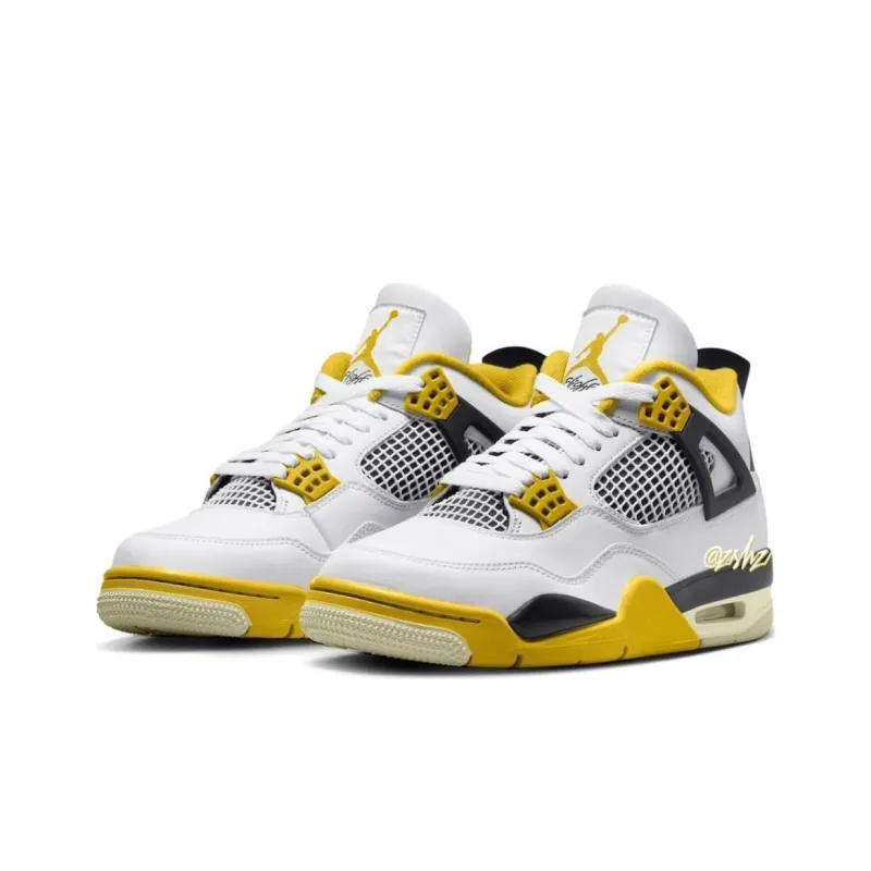Jordan Air Джордан 4 'Vivid Сера' Амортизаторы Shock Absorbers Противоскользящие Высокие Топы Винтажные баскетбольные кроссовки Мужские Белый Желтый