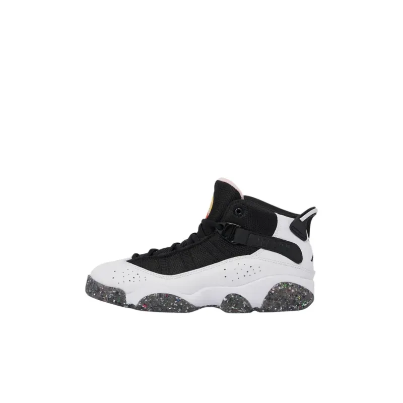 Jordan Air Jordan 6 Кольца MID Топ Детские Баскетбольные Кроссовки Белый Черный