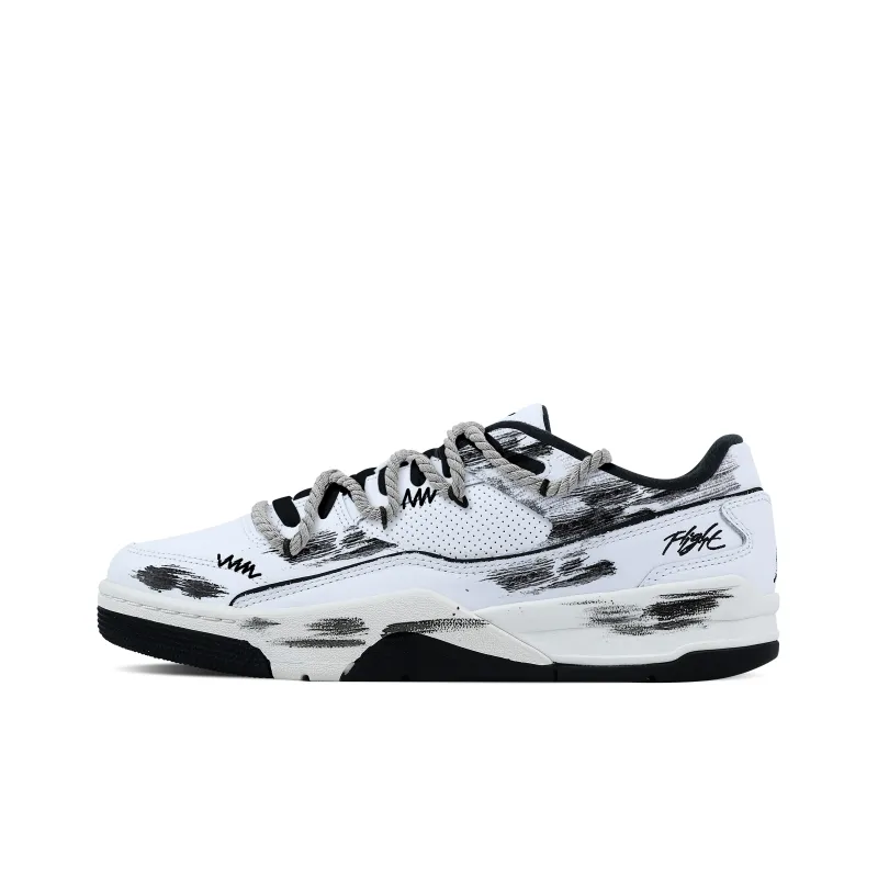 Jordan Flight Корт Gothic Knight Износостойкий Низкий Топ Винтажные Баскетбольные Кроссовки Мужские Черный Белый