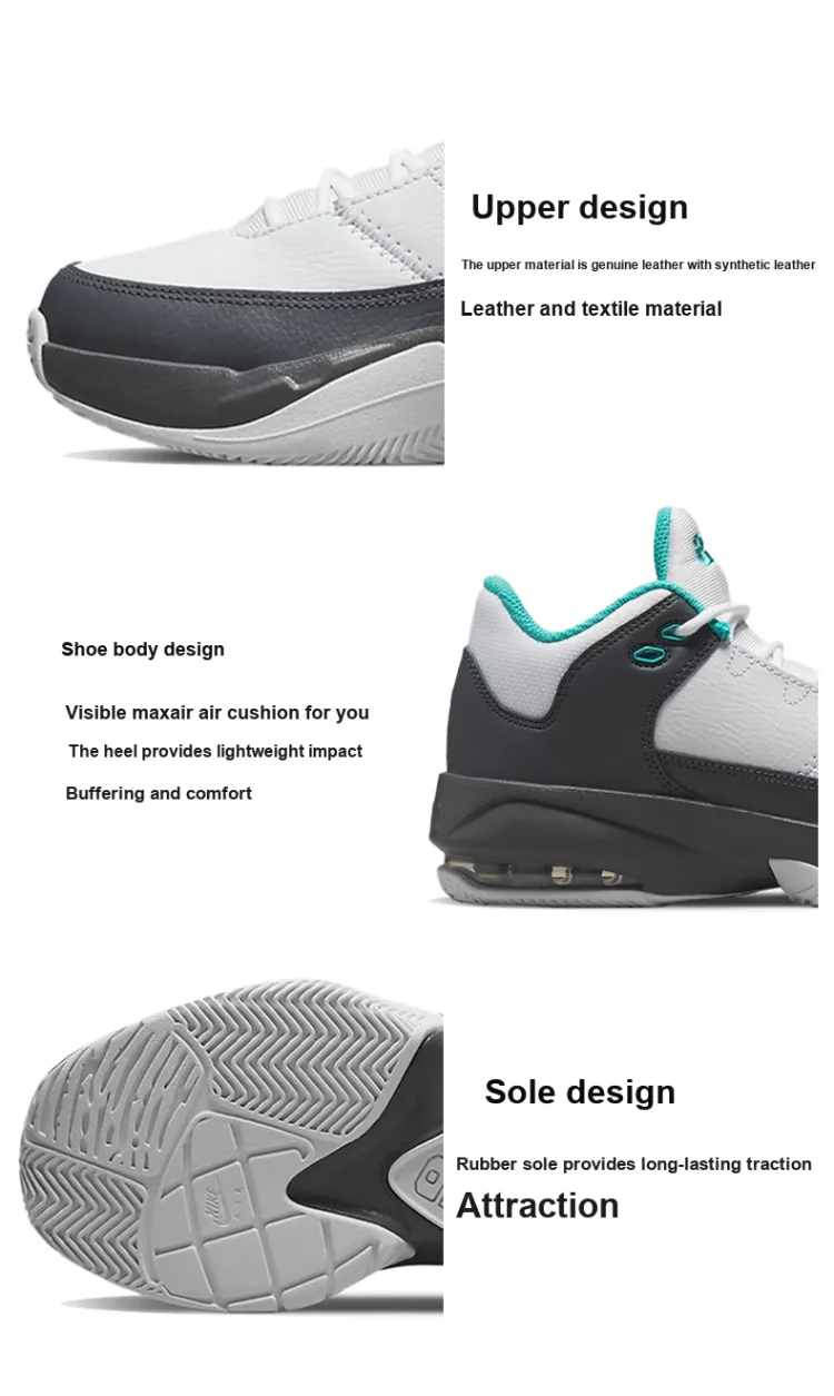 Jordan Max Aura 3 Противоскользящие Амортизация Устойчивые к износу MID Топ Детские Баскетбольные кроссовки Белый Серый