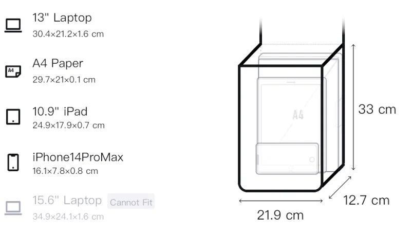 Д21,9*Ш12,7*В33см