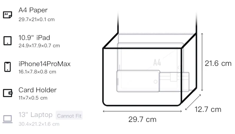 Д29,7*Ш12,7*В21,6 см