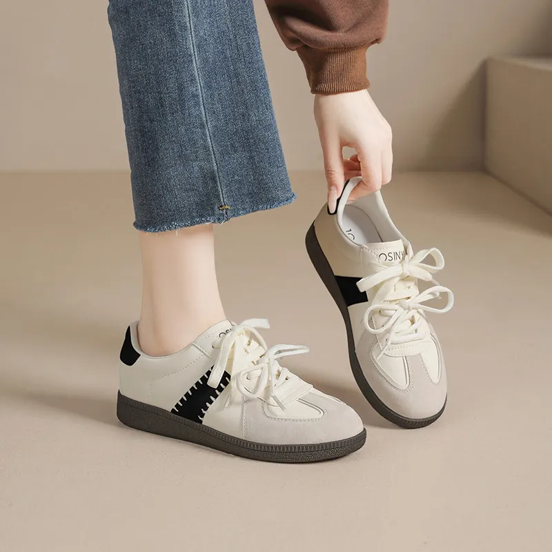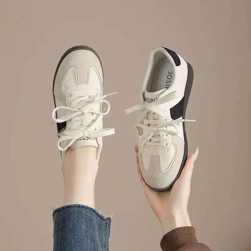 JOSINY Slip-resistant Abrasion-resistant Lightweight Low-Top Skateboarding Shoes Women's Beige Black JOSINY Противоскользящие Износостойкие Легкие Низкие Кроссовки для Скейтбординга Женские Бежево-Черные