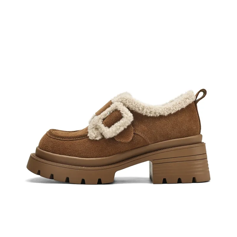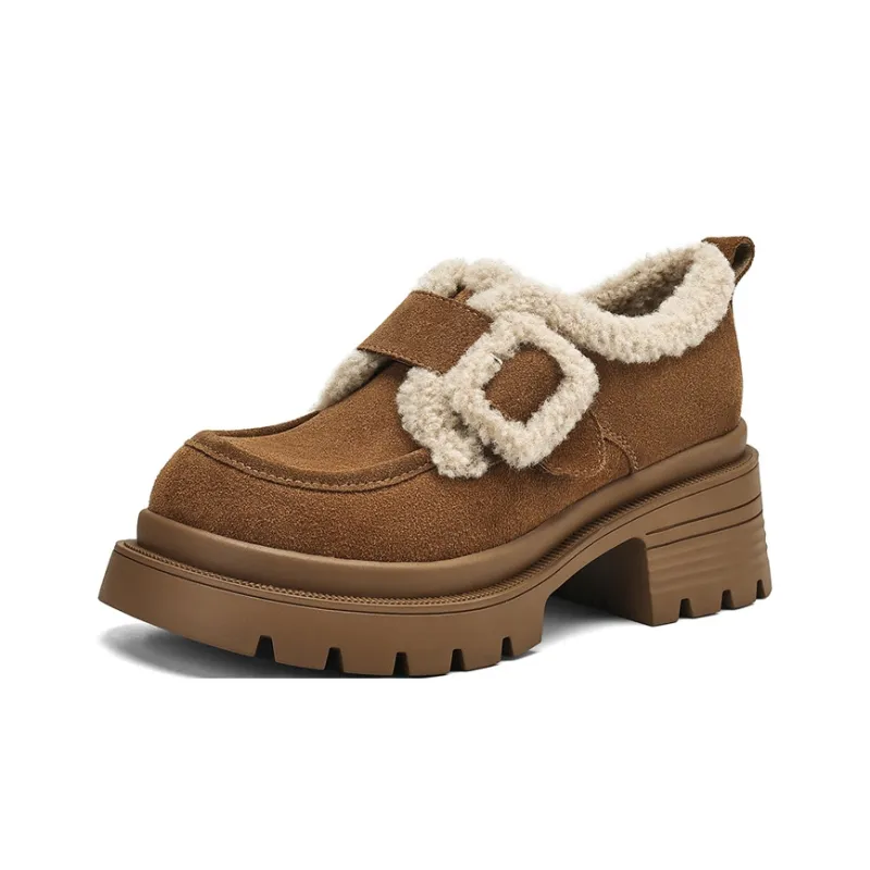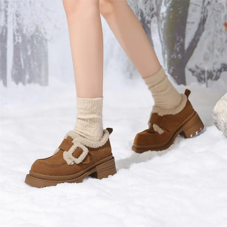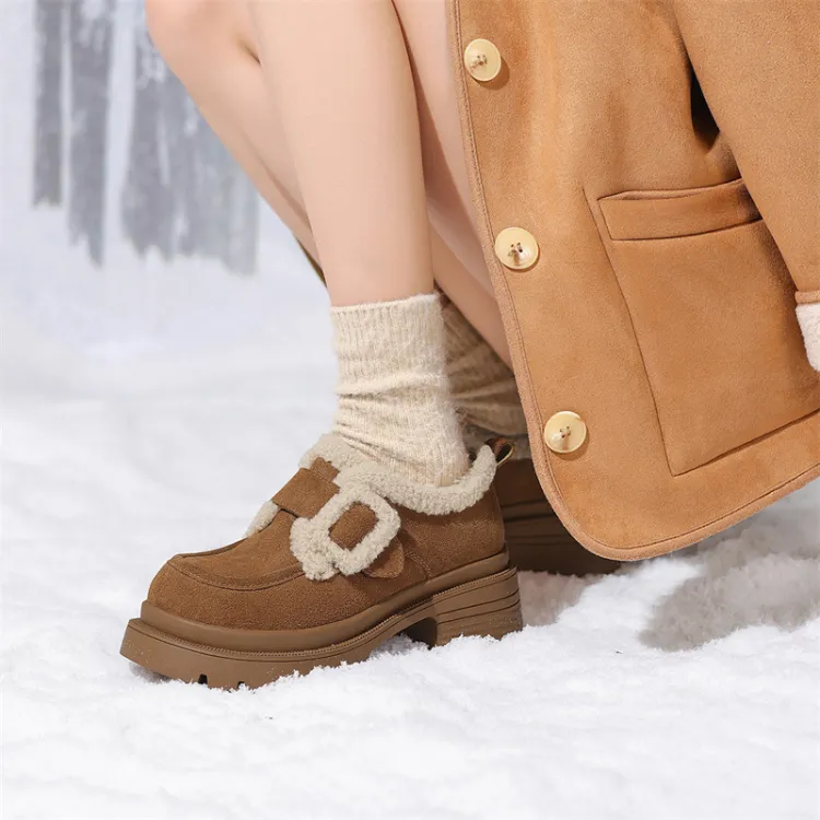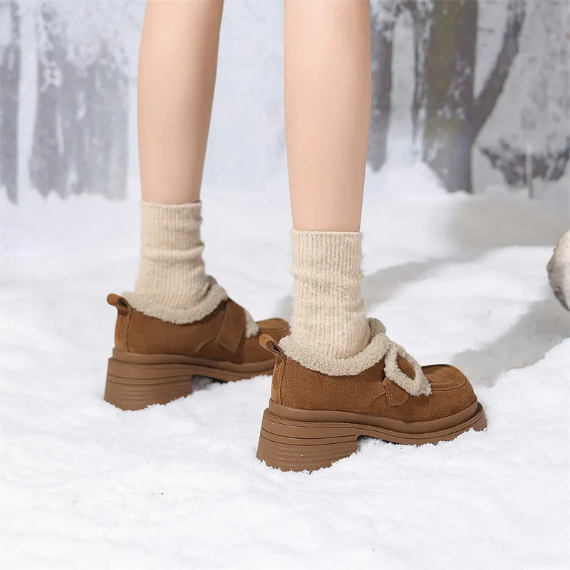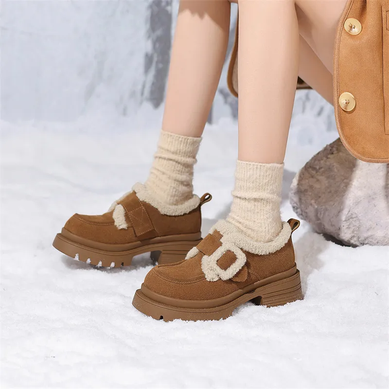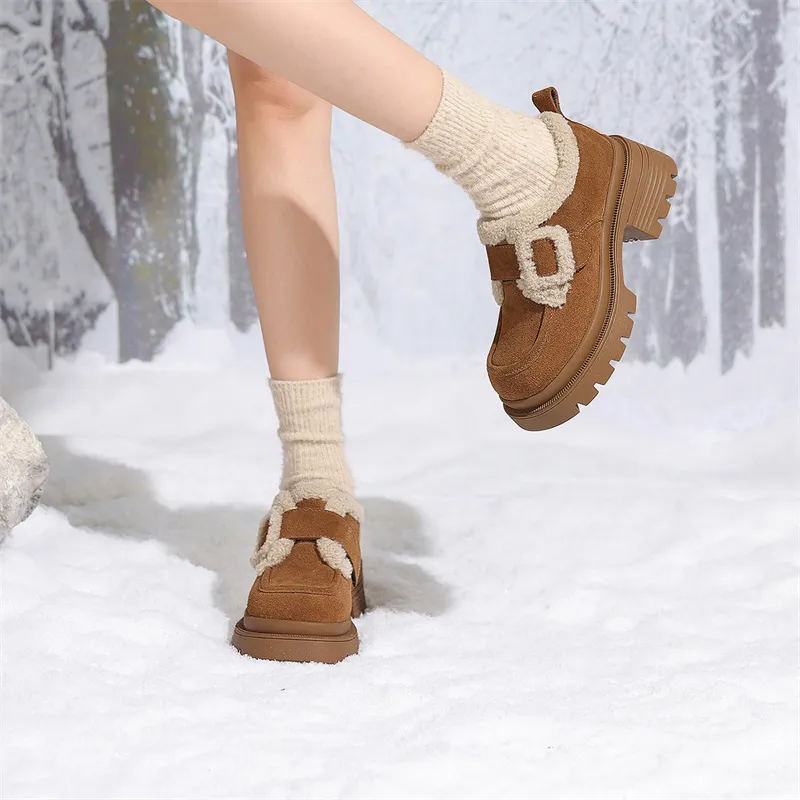 JOSINY Термический Утолщенный и Флис с Подкладкой Овчина Утепленная Обувь Водонепроницаемая Замша Снежная Обувь Женская CAMEL