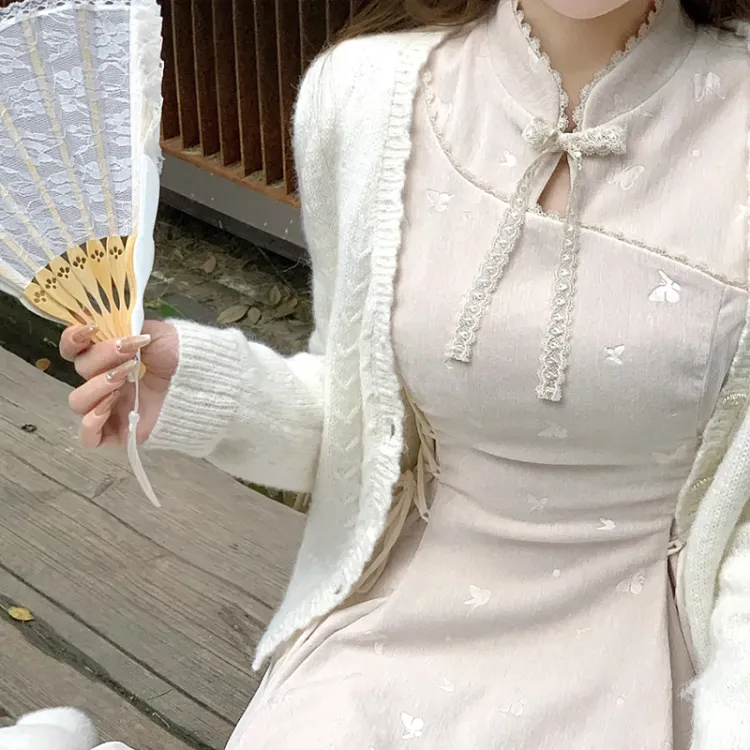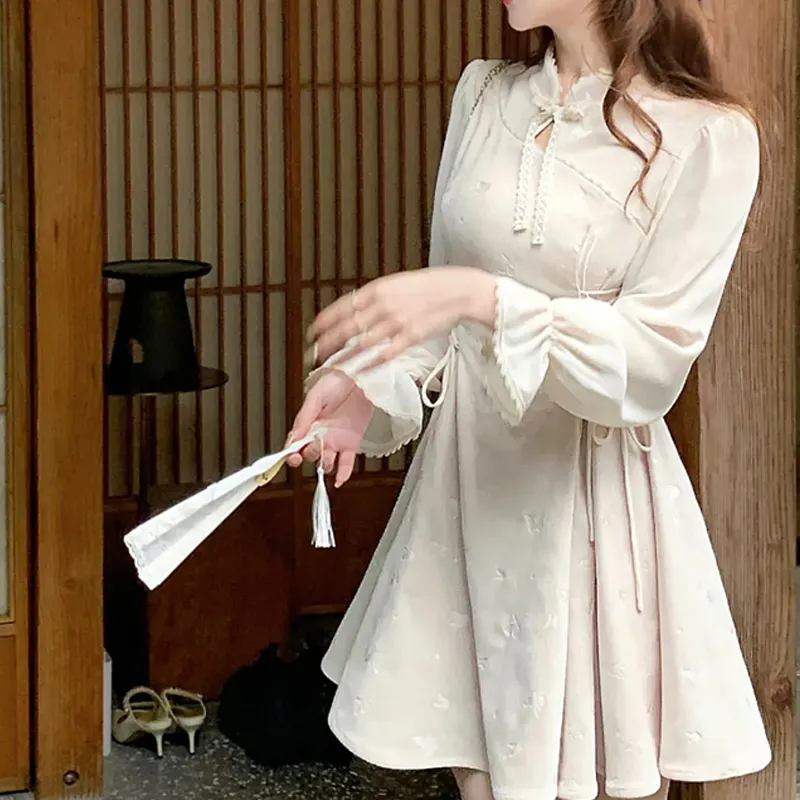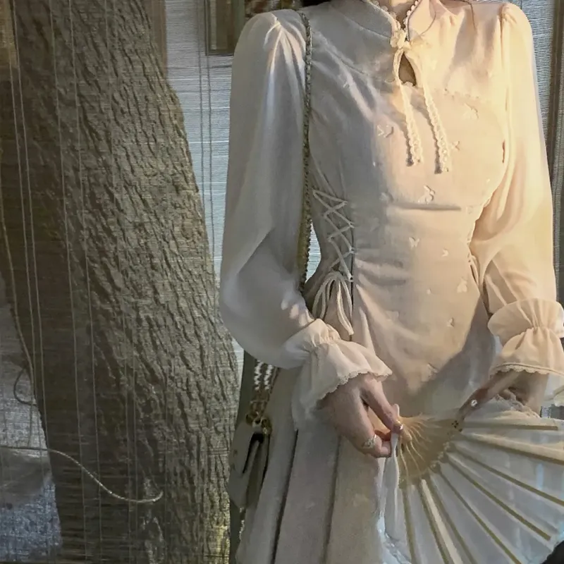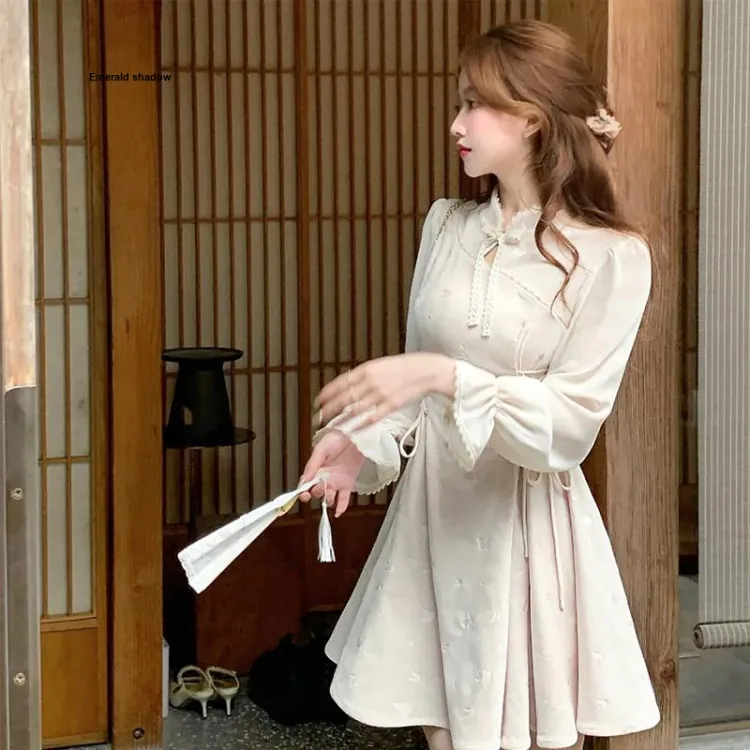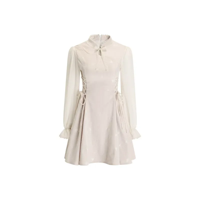 JOSR Длинное платье с длинными рукавами женское абрикосового цвета